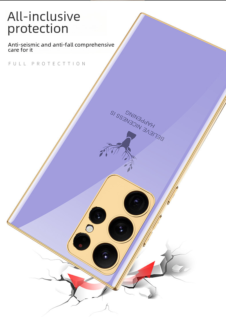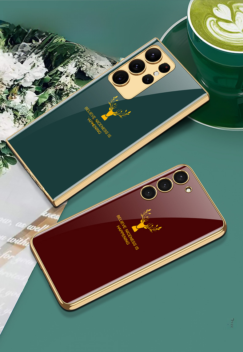 New Samsung s23ultra phone case s23plus electroplated painted glass creative for s23 phone case