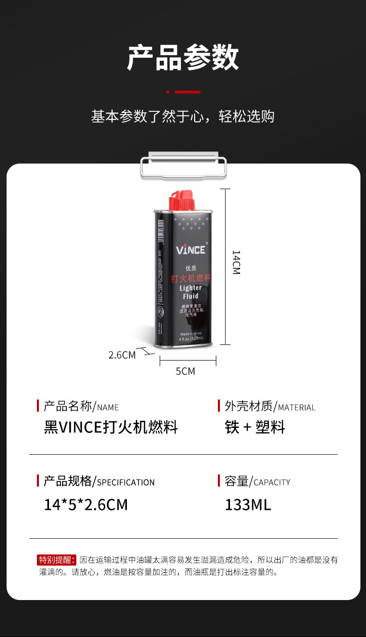 New Vince Windproof Lighter Fuel Universal Black Iron Tank Accessories Liquid Combustion Oil