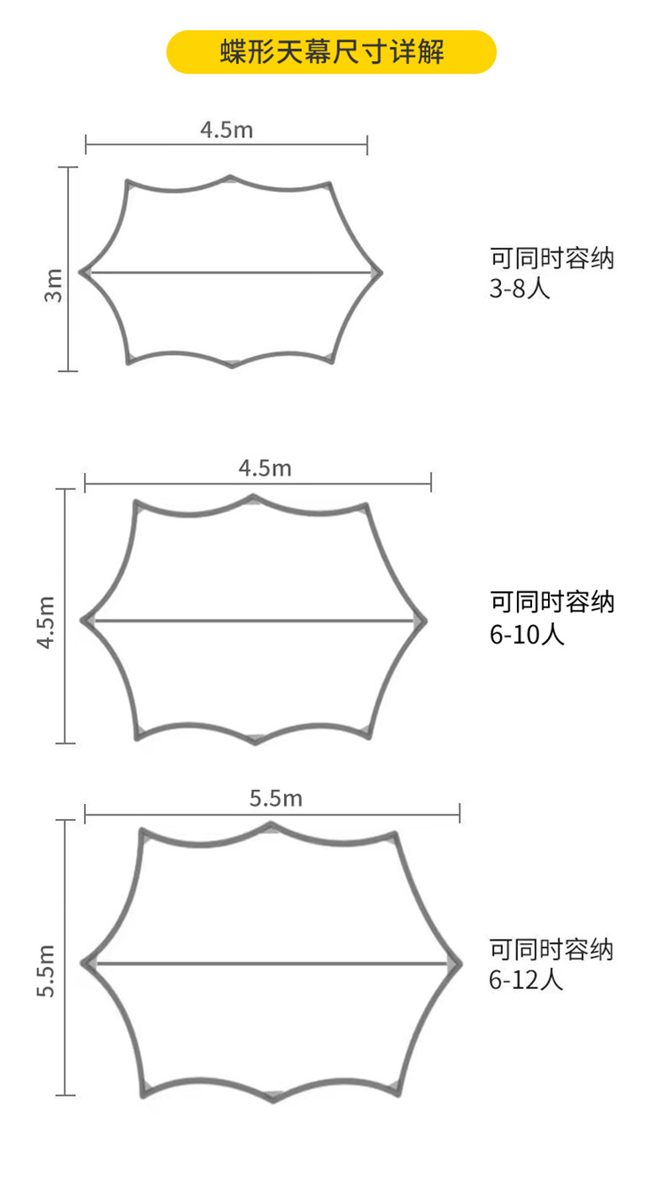 - 3*4.5 m [applicable to 3-8 people]]