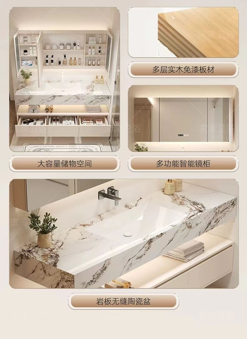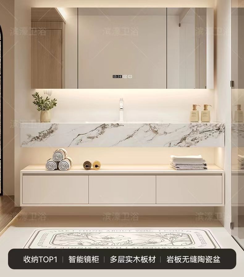 - Rock plate ceramic seamless basin intelligent mirror cabinet -160cm