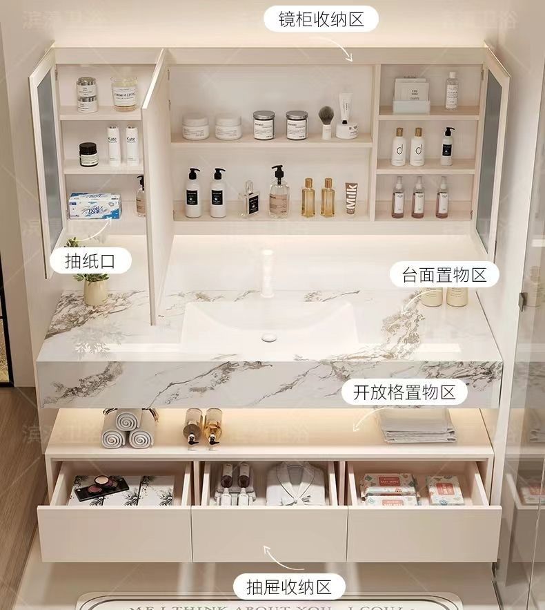 - Rock plate ceramic seamless basin intelligent mirror cabinet -110cm