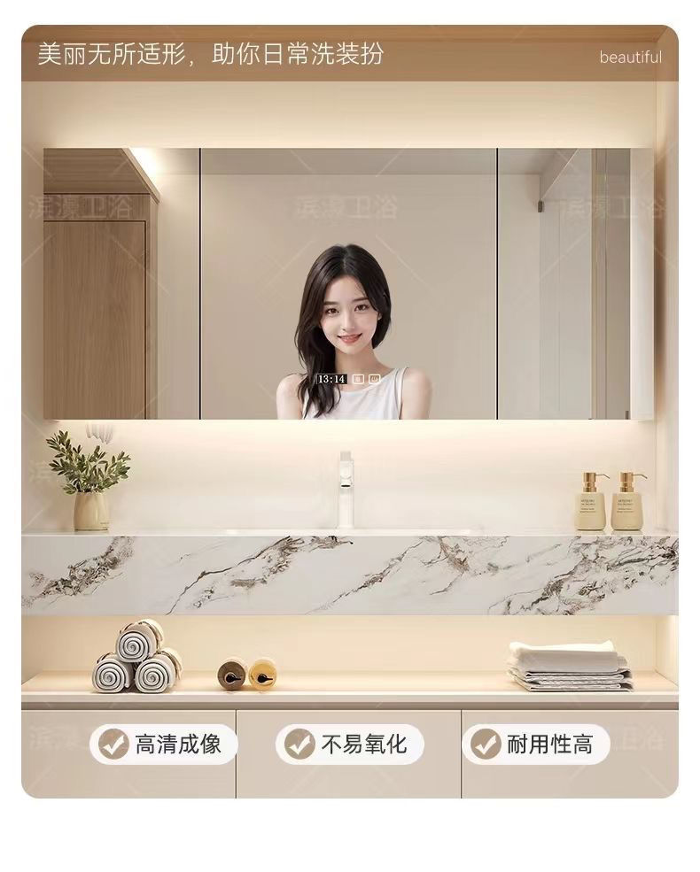 - Rock plate ceramic seamless basin intelligent atmosphere mirror -80cm