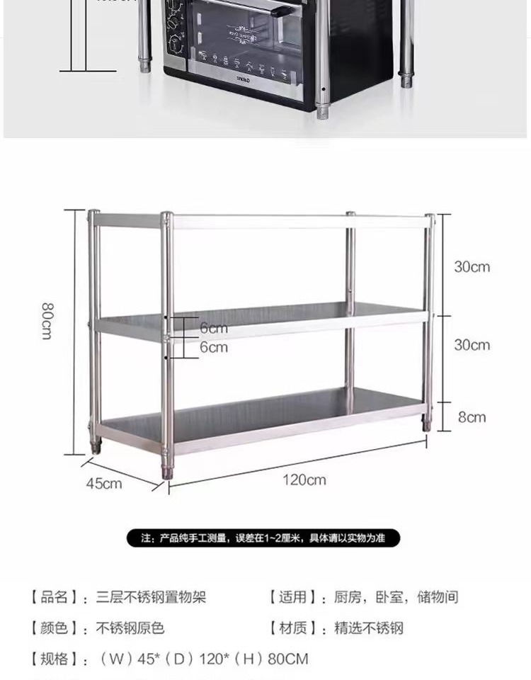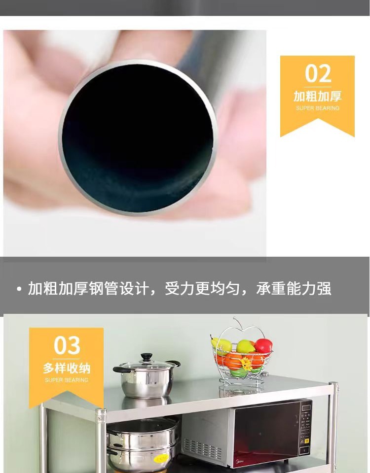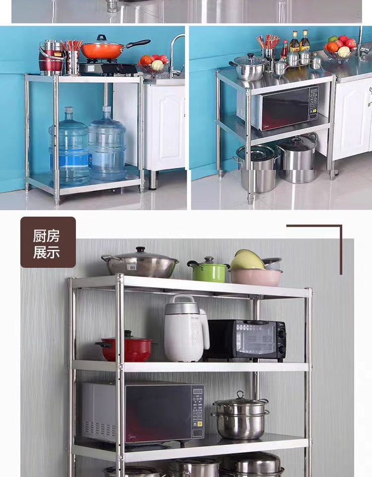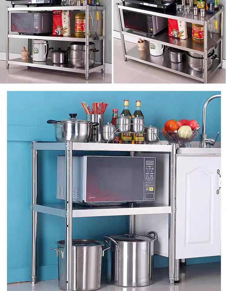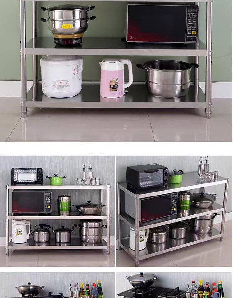 New kitchen stainless steel storage rack 2-layer thickened 3-layer floor bowl rack oven balcony storage microwave oven stove