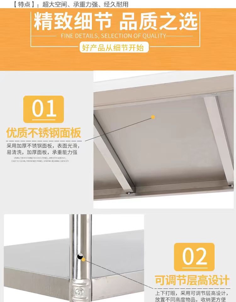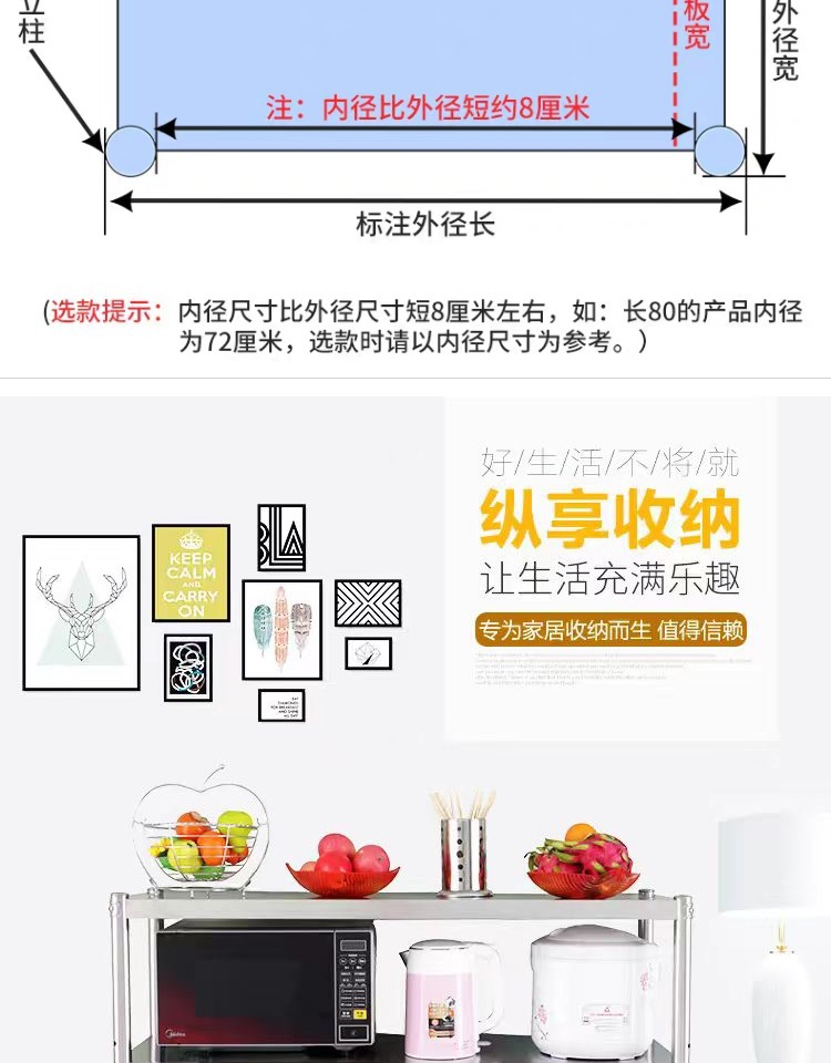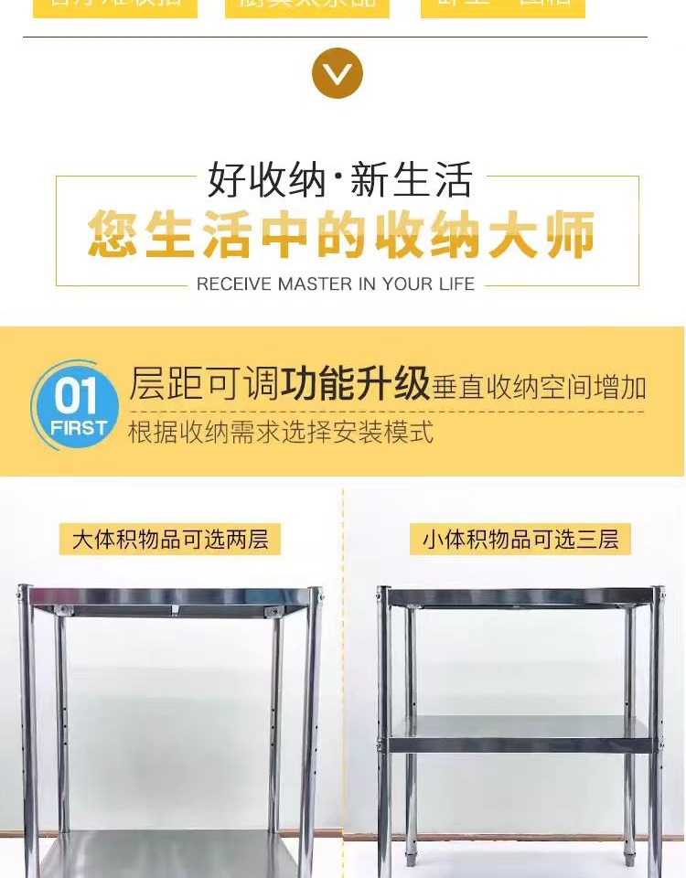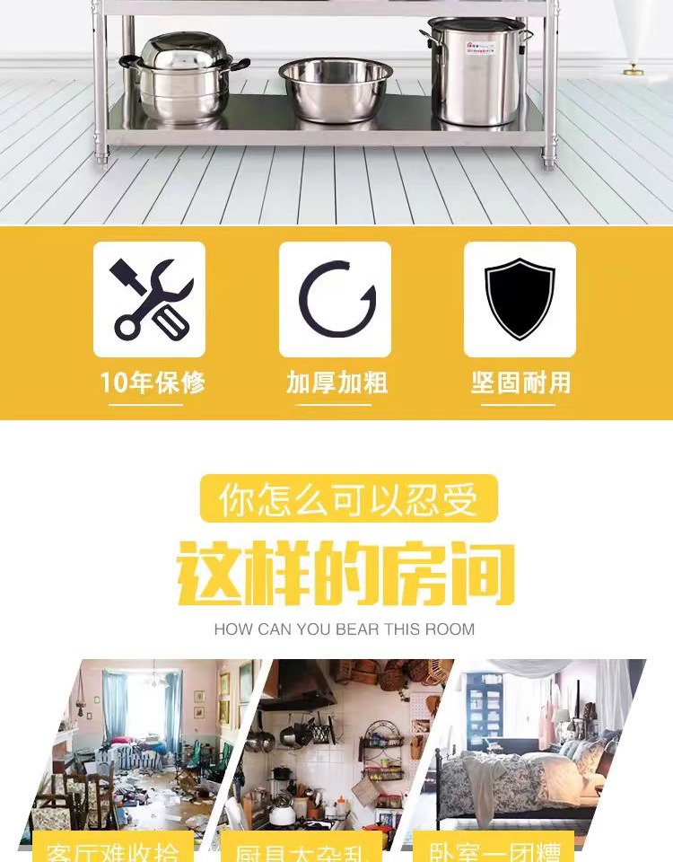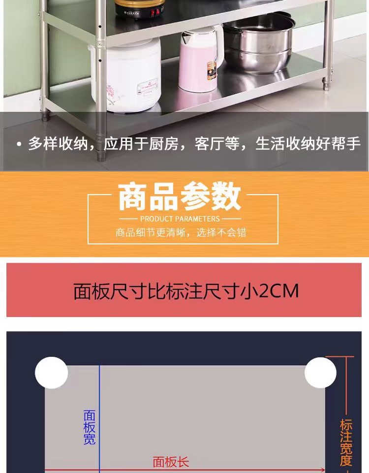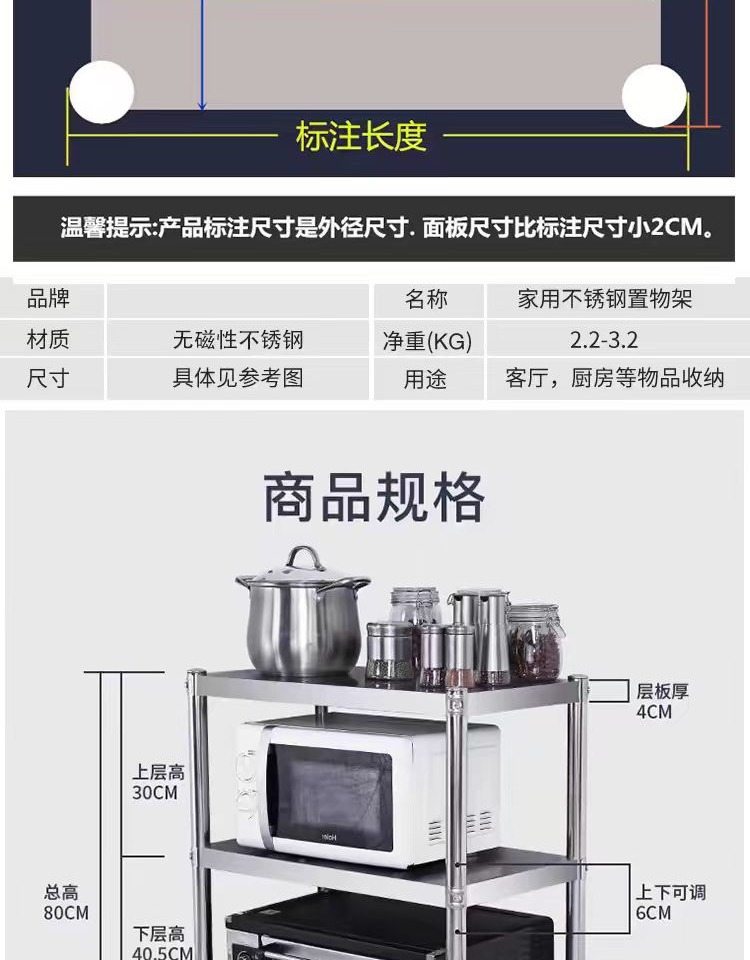 New kitchen stainless steel storage rack 2-layer thickened 3-layer floor bowl rack oven balcony storage microwave oven stove