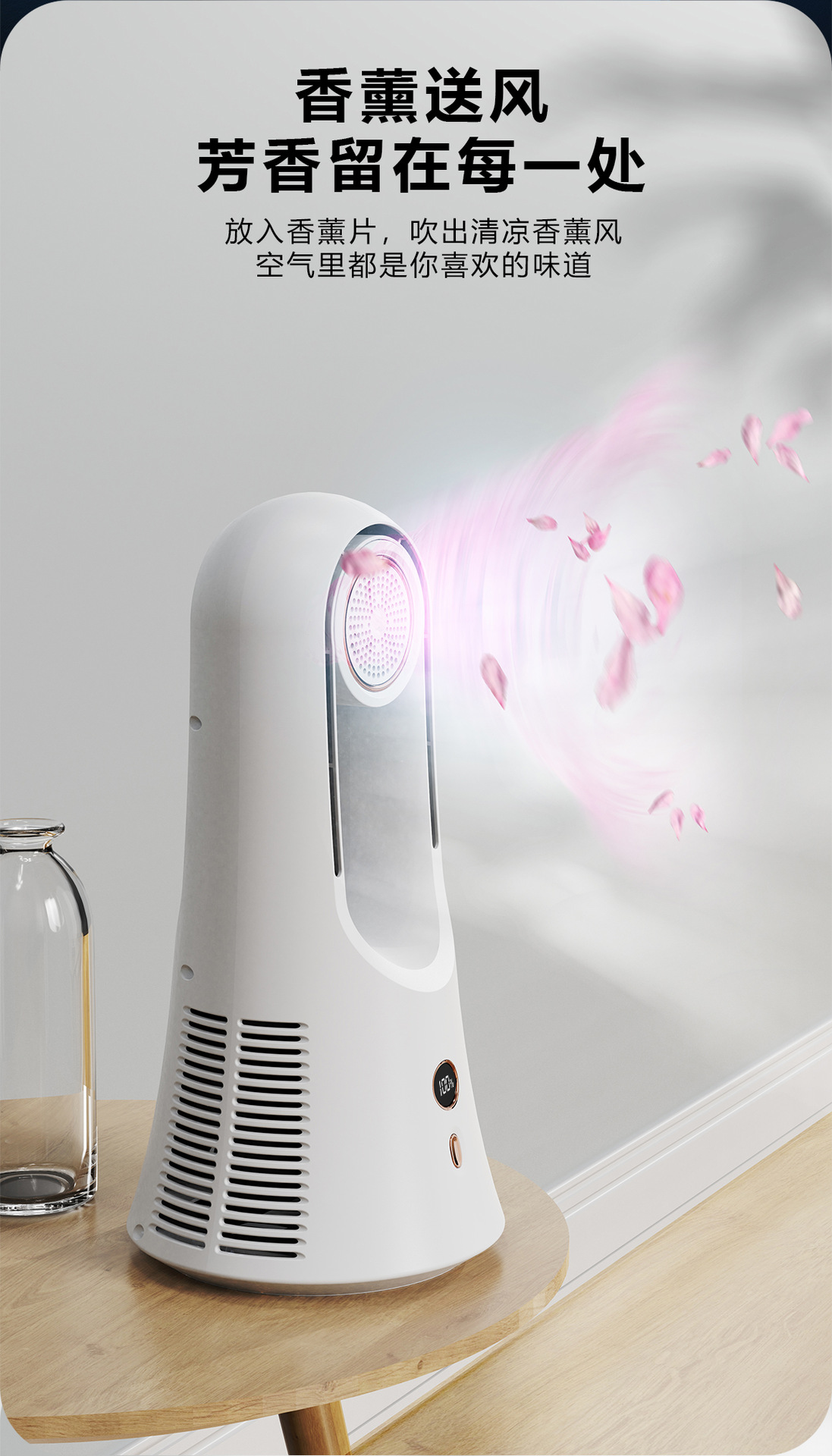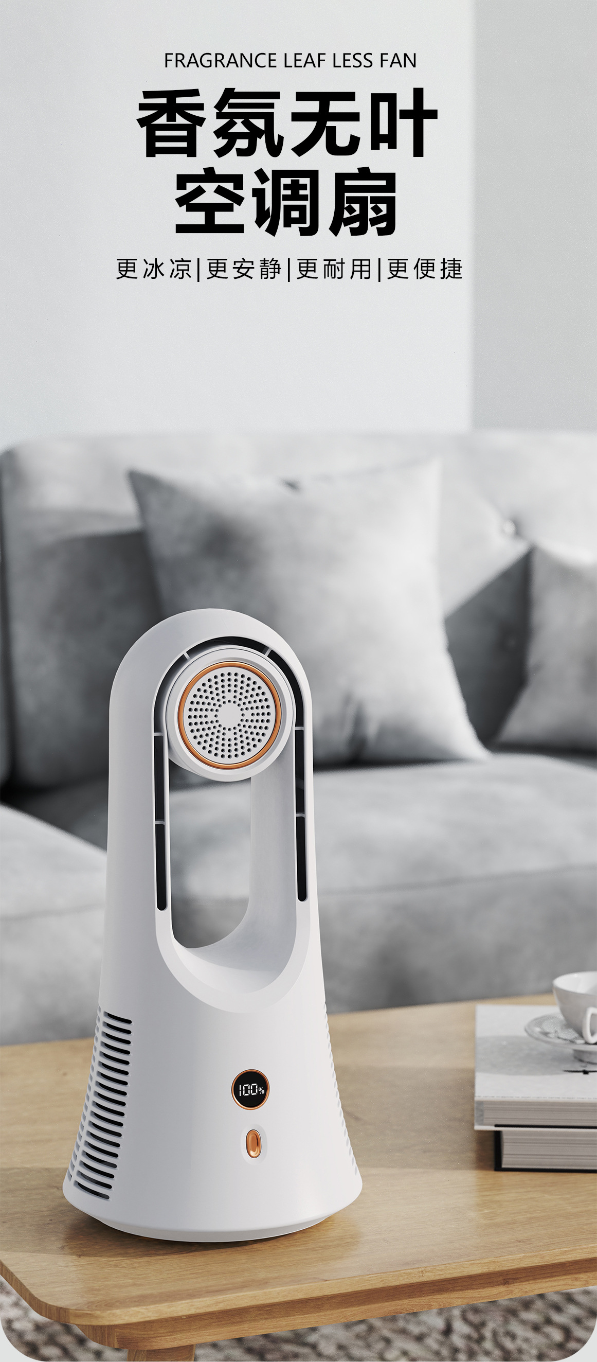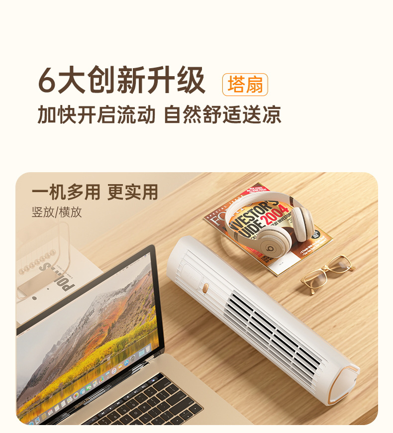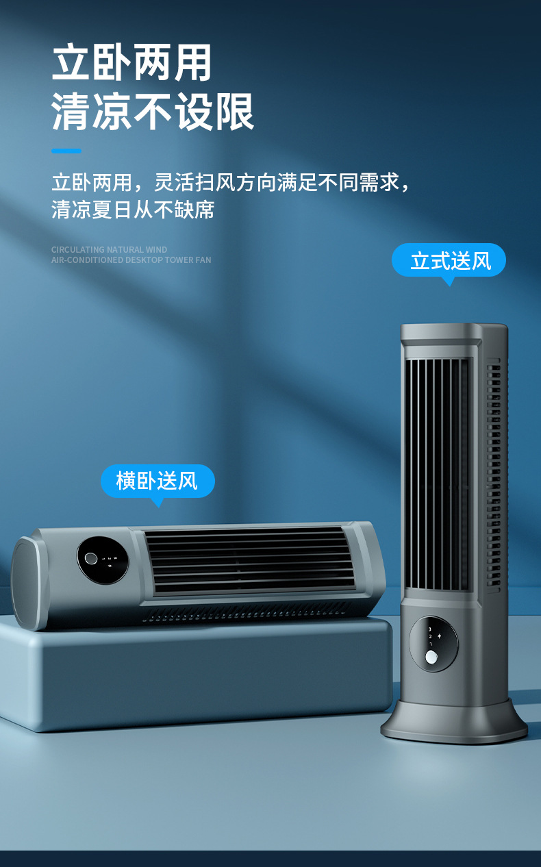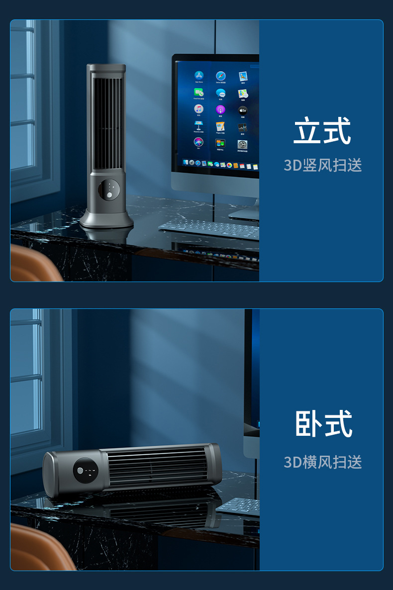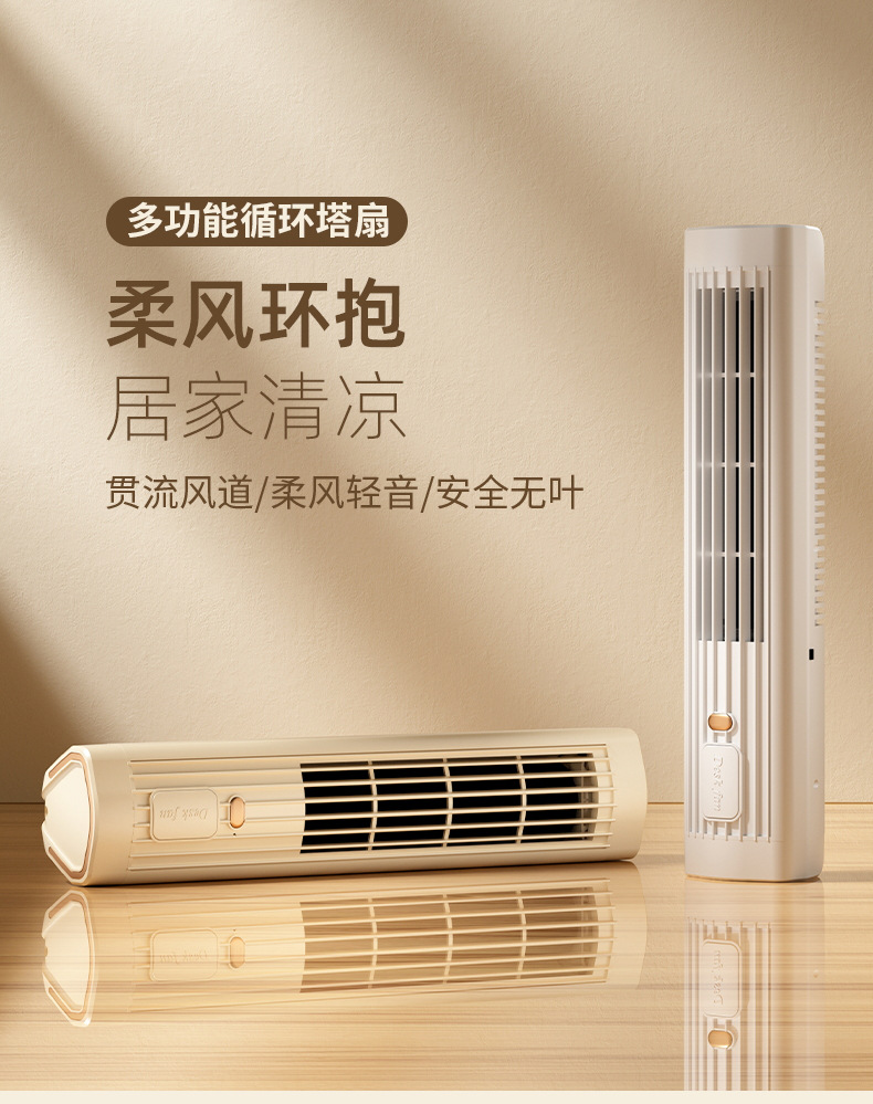 New leafless aromatherapy fan air conditioning tower fan charging desktop silent home office portable gift cross border