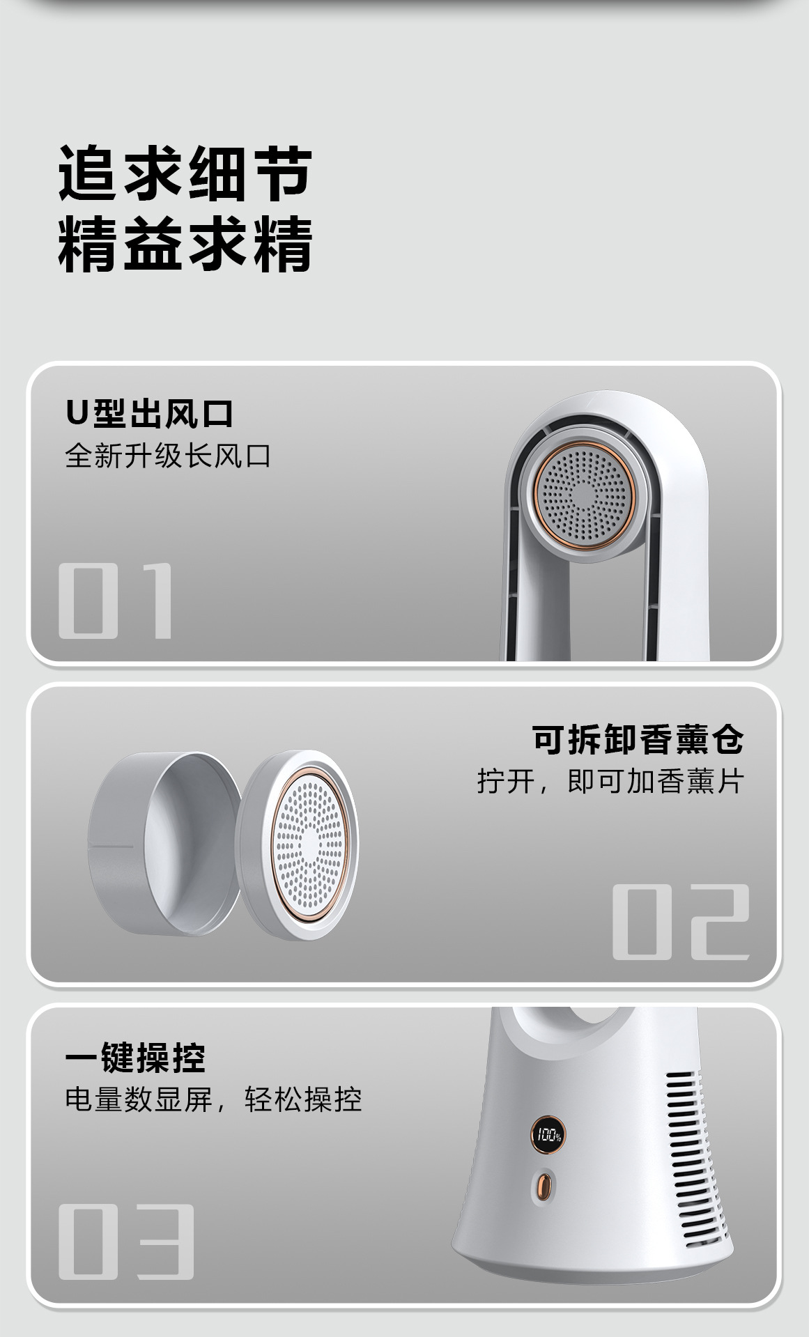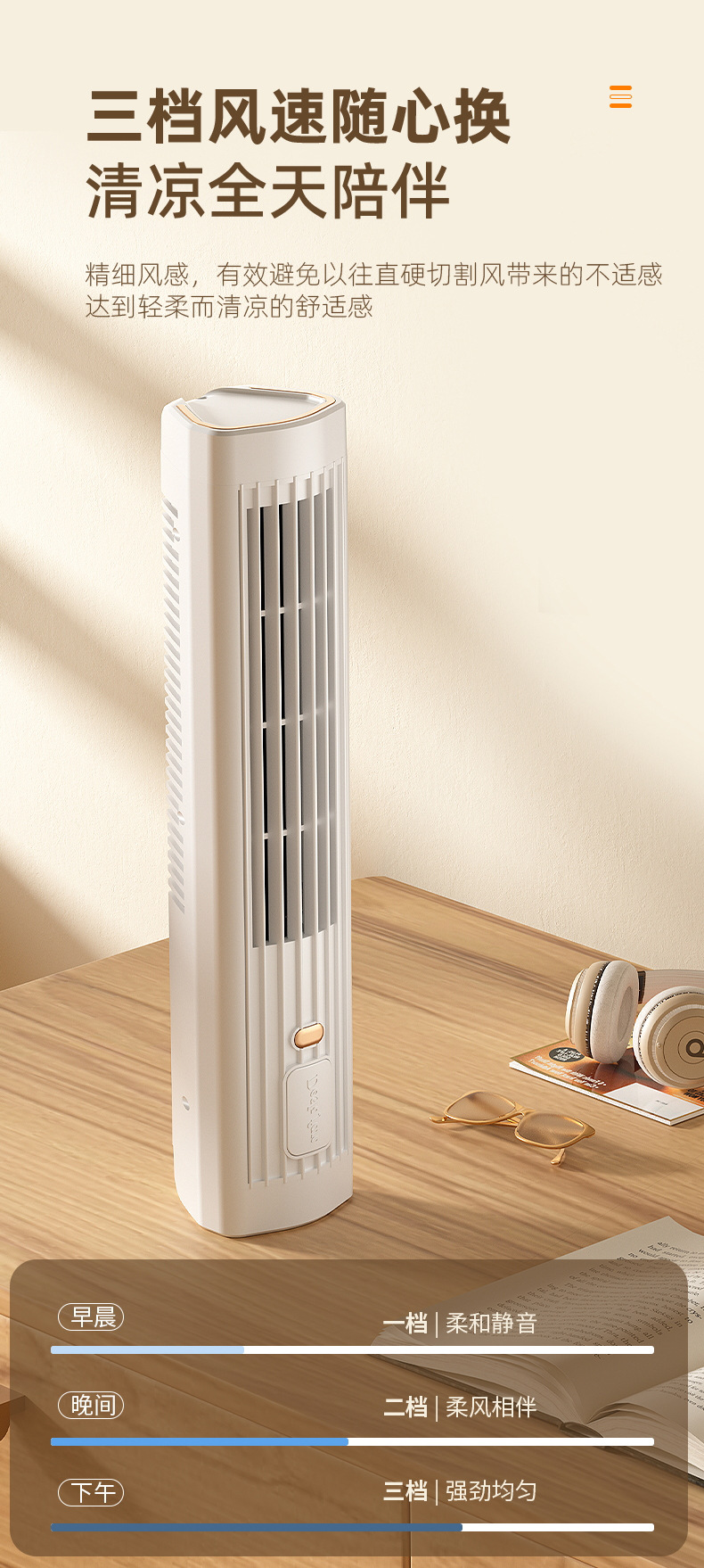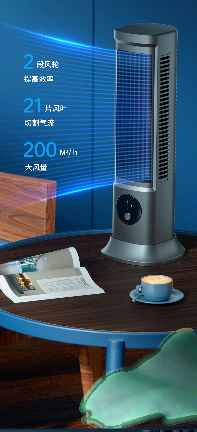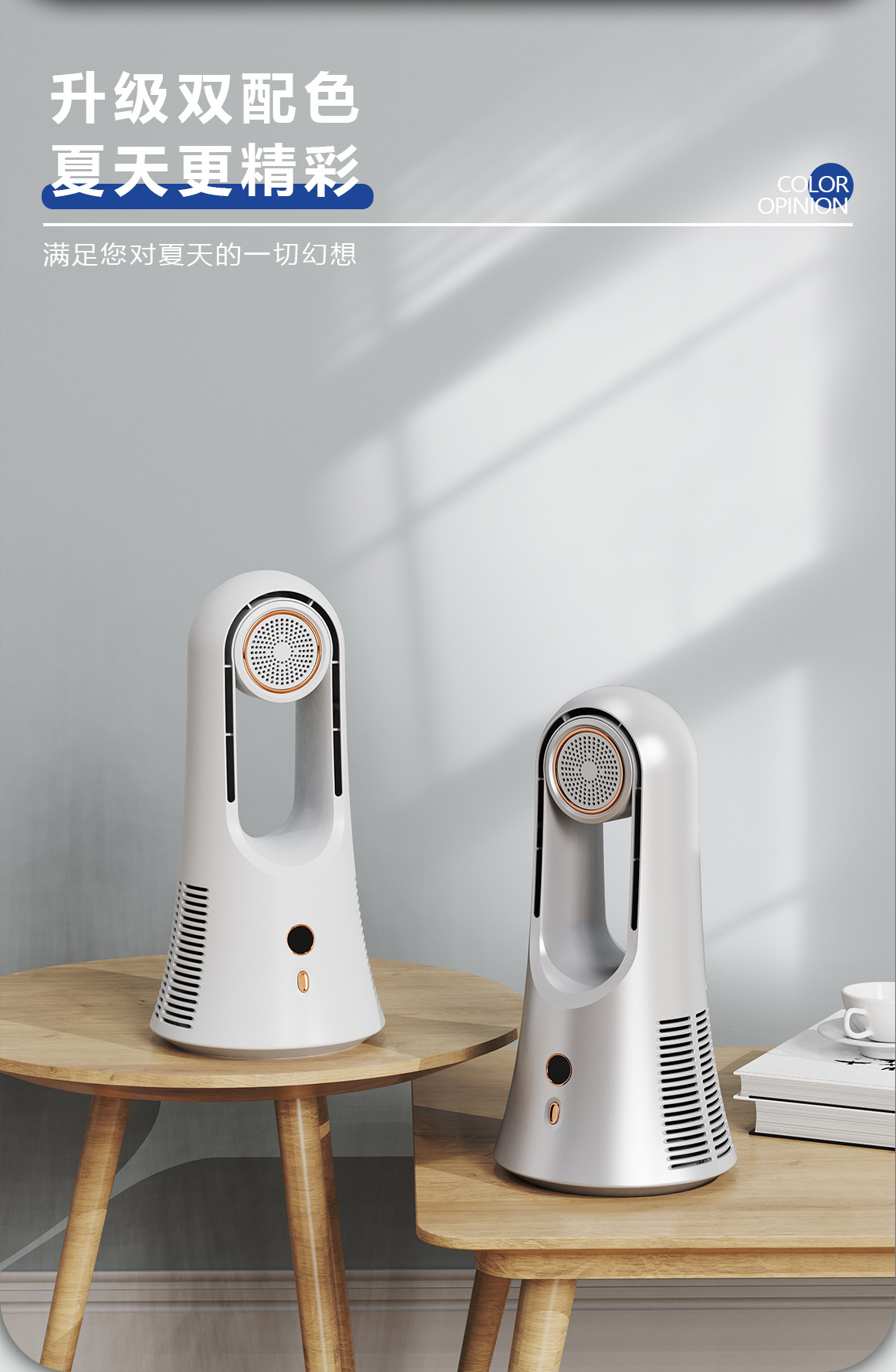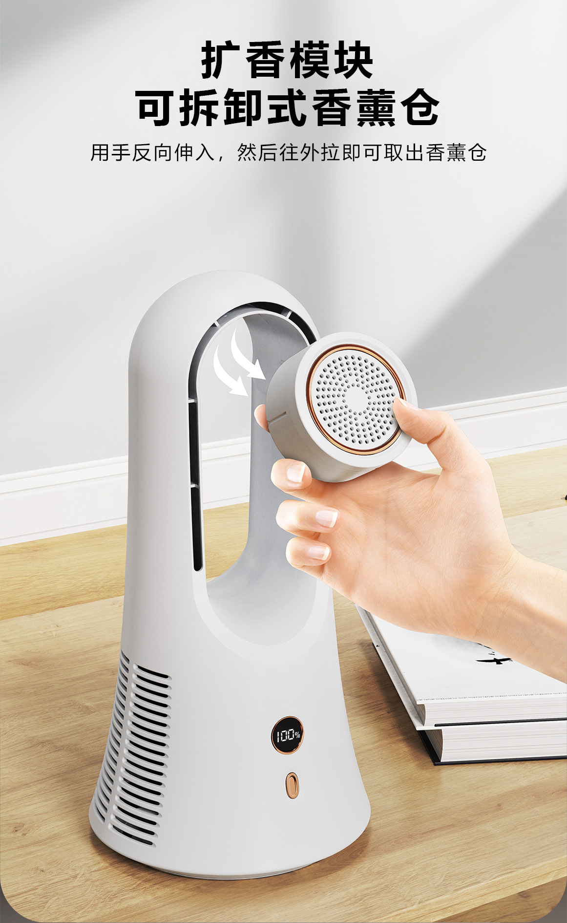 New leafless aromatherapy fan air conditioning tower fan charging desktop silent home office portable gift cross border
