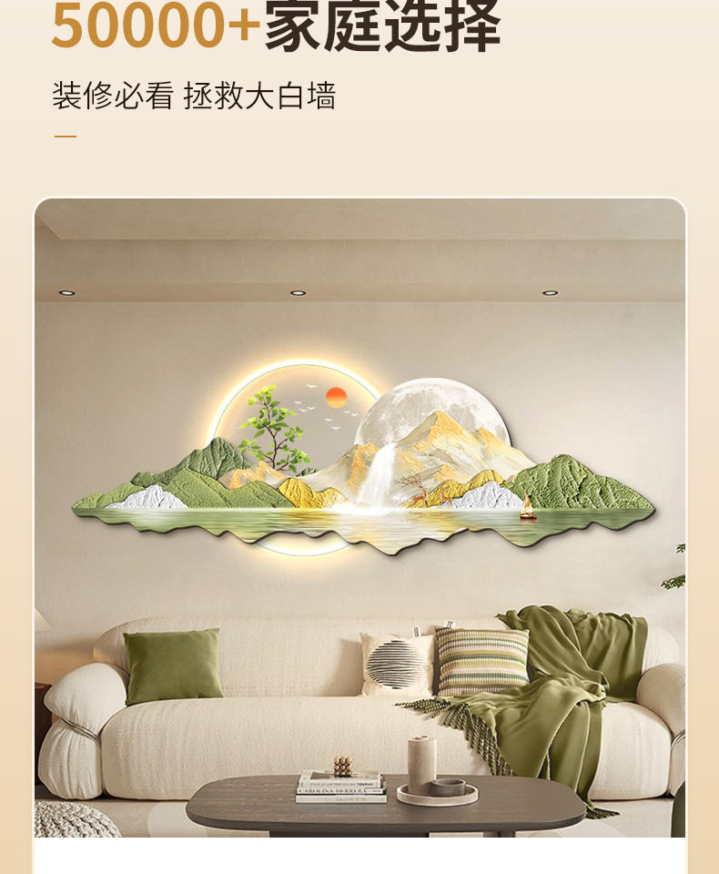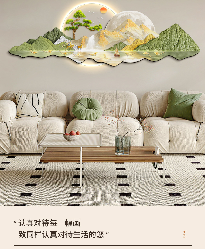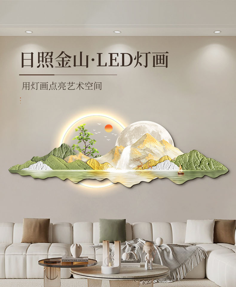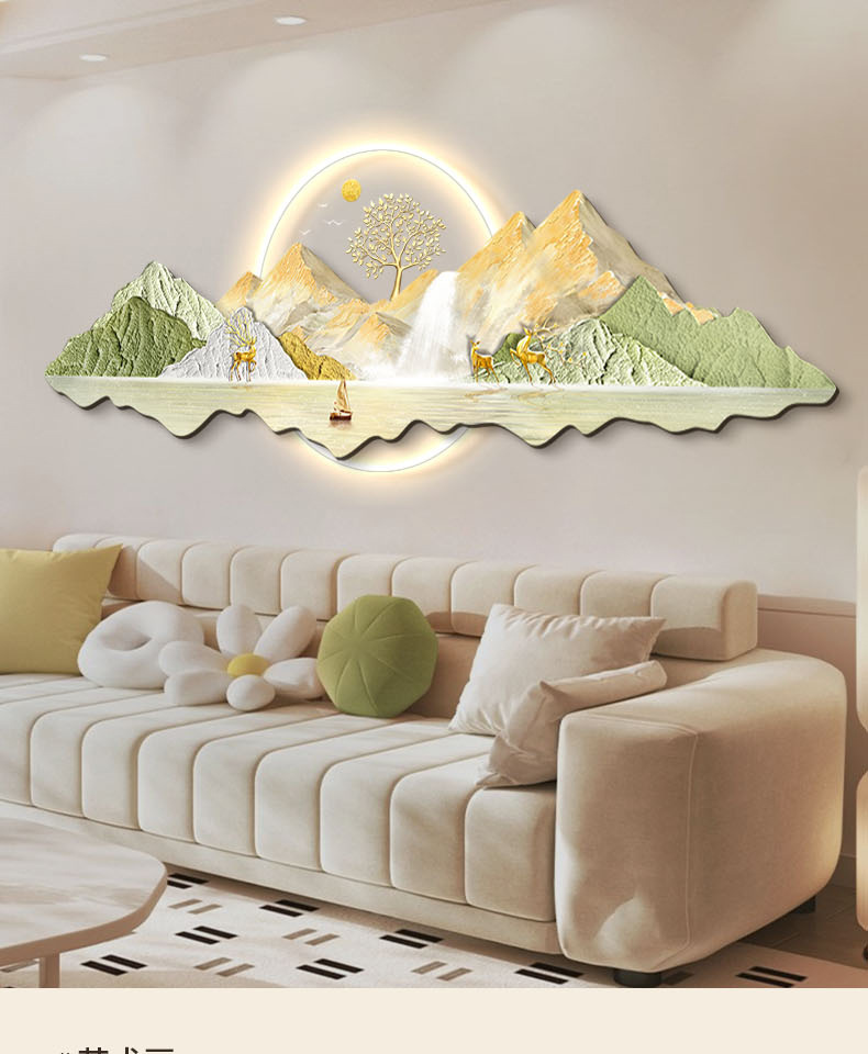 New living room decorative painting Rizhao Jinshan sofa background wall hanging painting 2023 new landscape painting wall lamp cream style