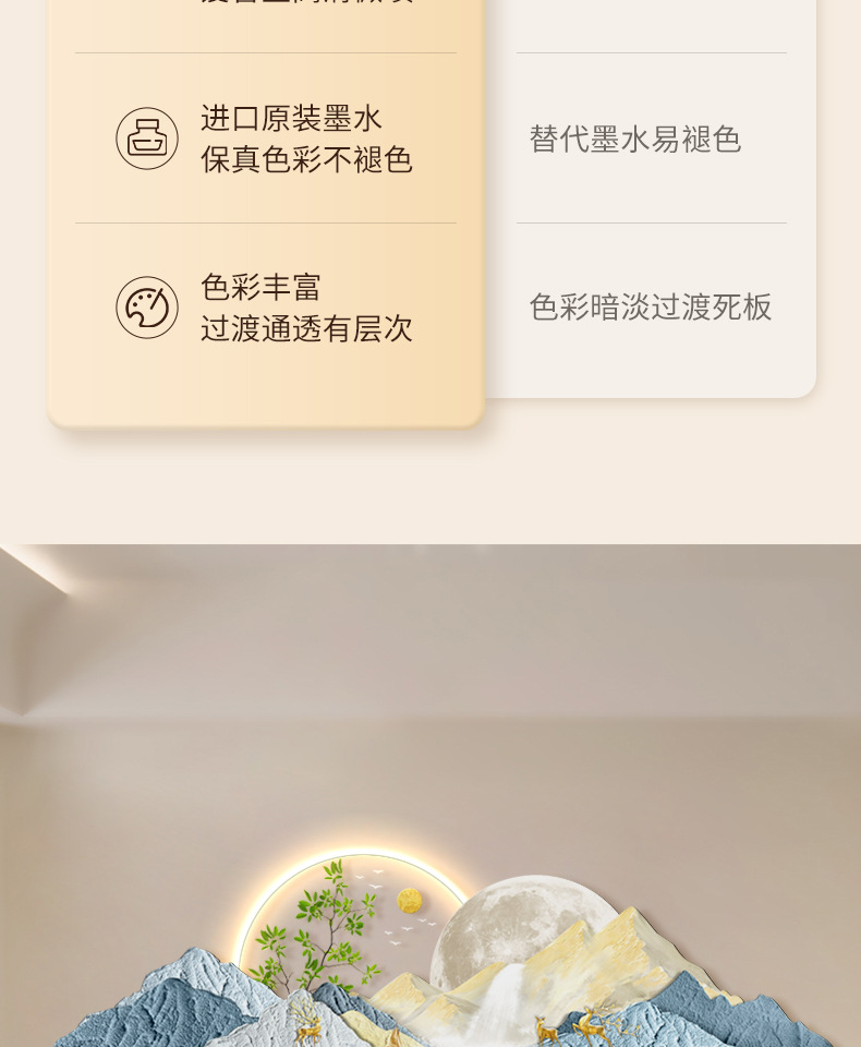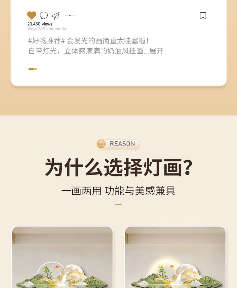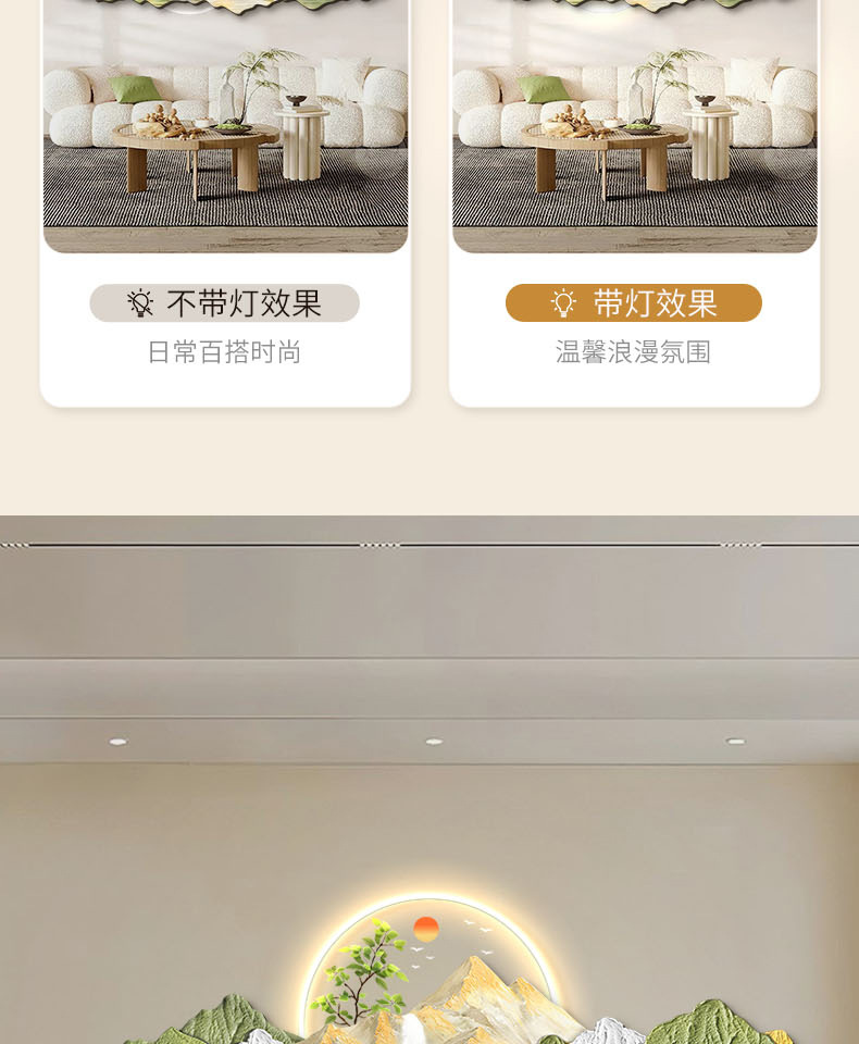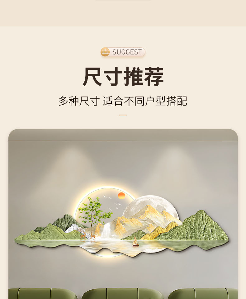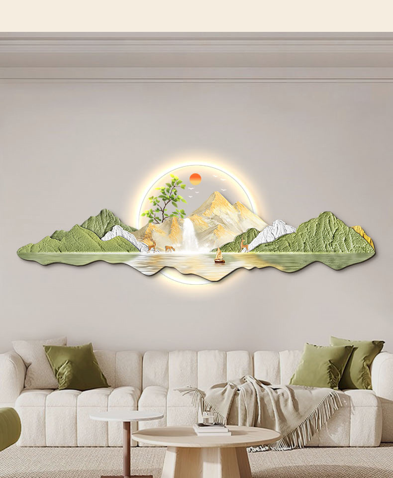 New living room decorative painting Rizhao Jinshan sofa background wall hanging painting 2023 new landscape painting wall lamp cream style