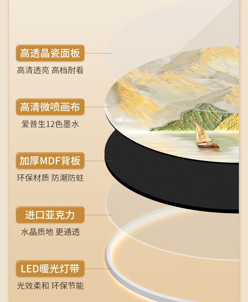 - 20 * 25cm-LED light painting [direct plug + remote control switch]-genuine crystal porcelain painting