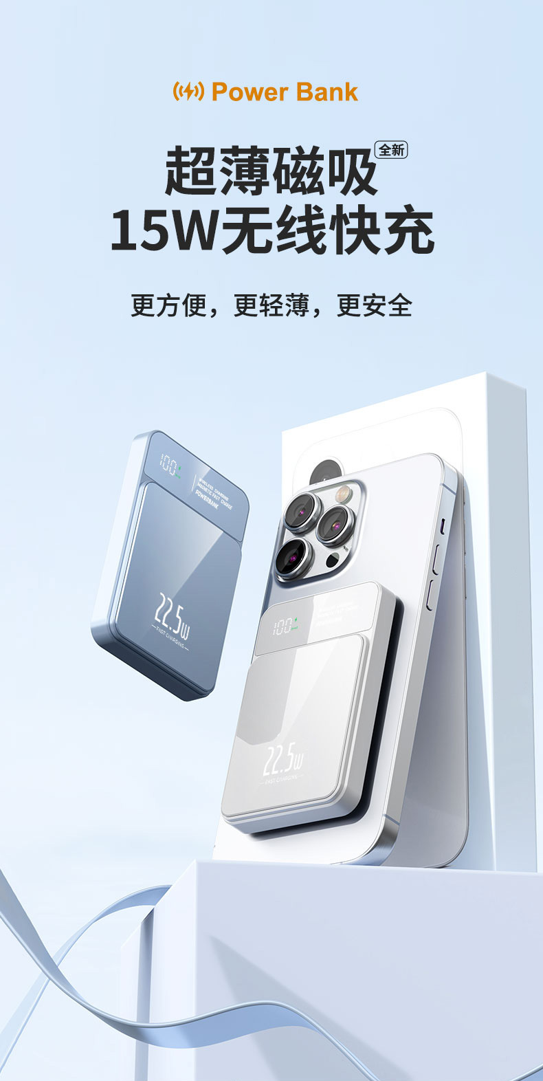 New product wholesale 22.5W super fast charging power bank small ultra-thin magnetic wireless charging magsafe mobile power supply