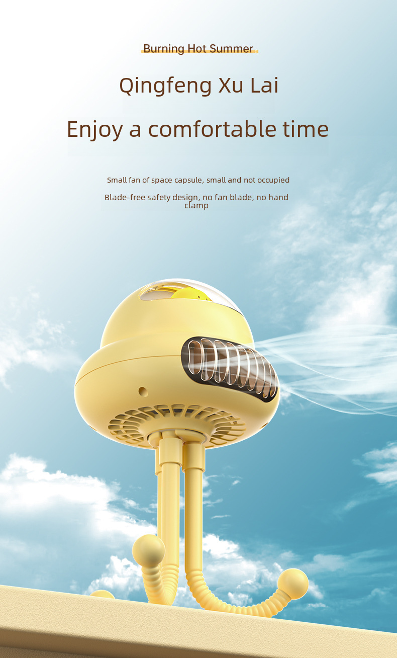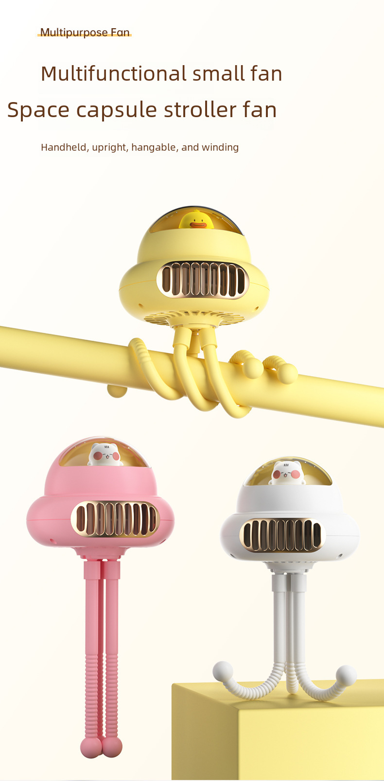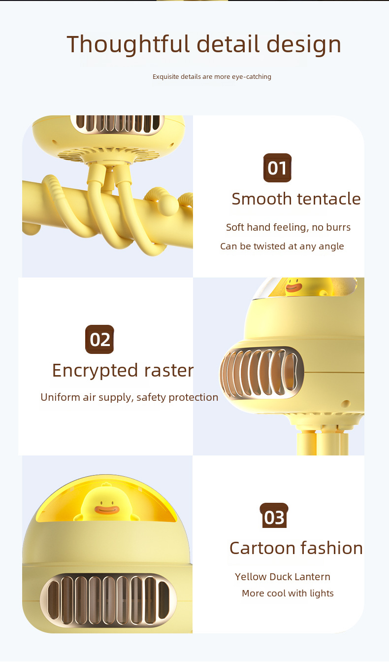 New shaking head stroller fan cartoon octopus fan desktop charging mosquito repellent fan with light small fan