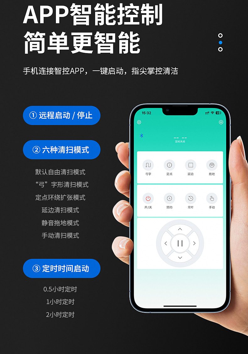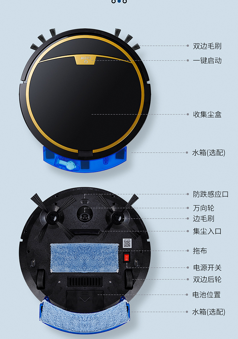 - Remote control + APP + water tank + anti-drop Black