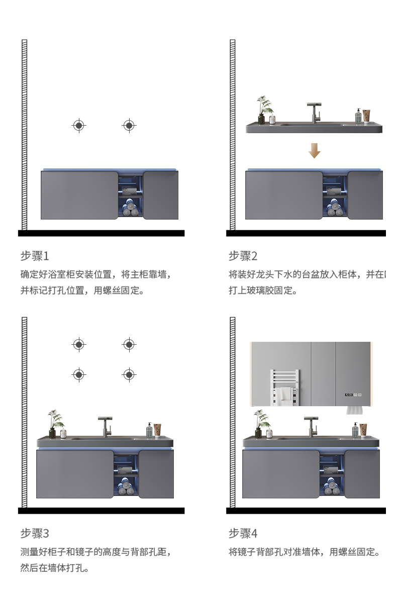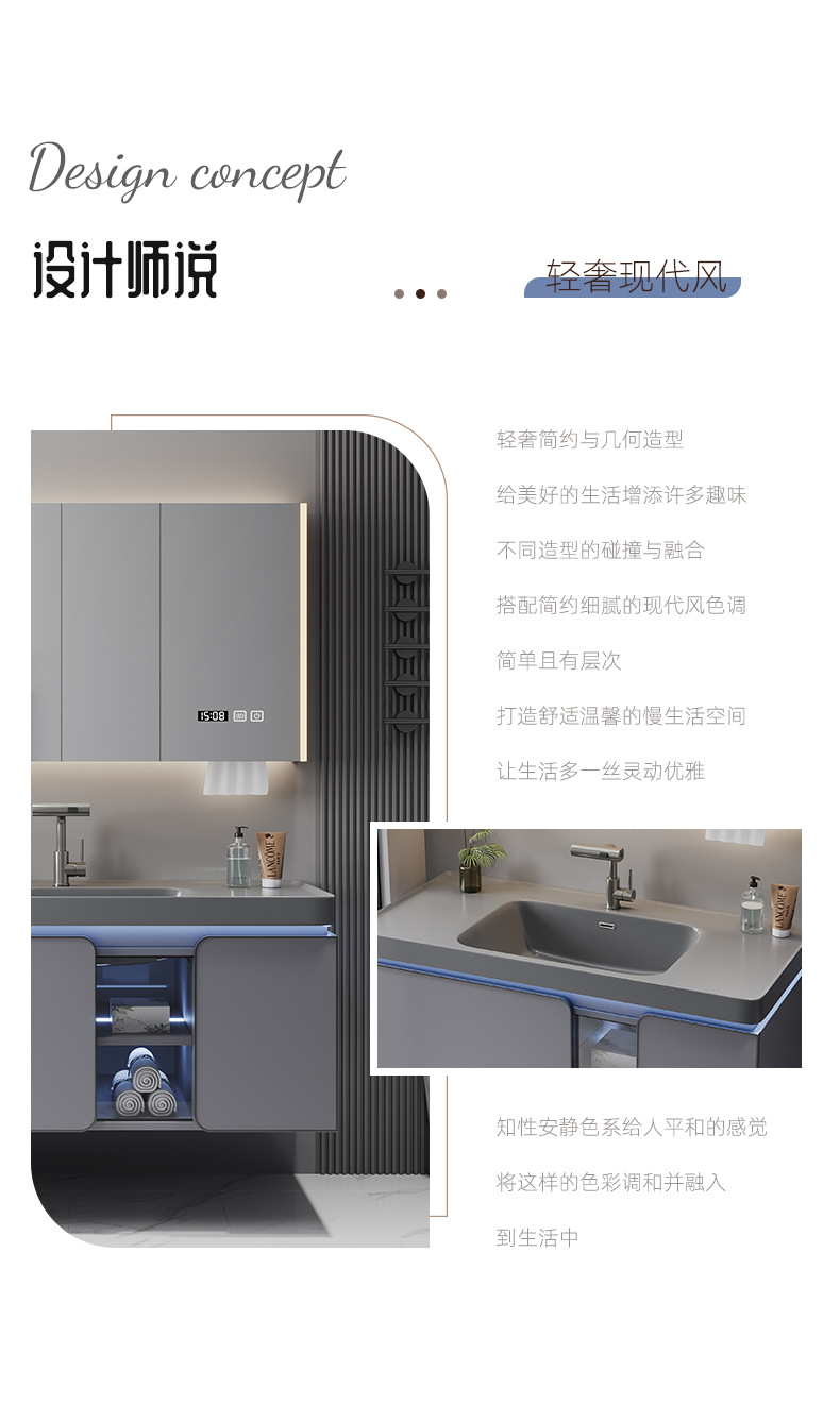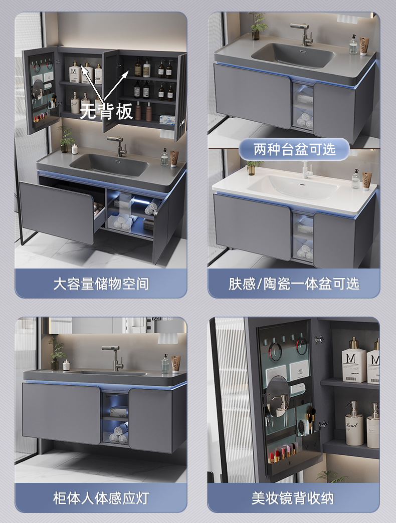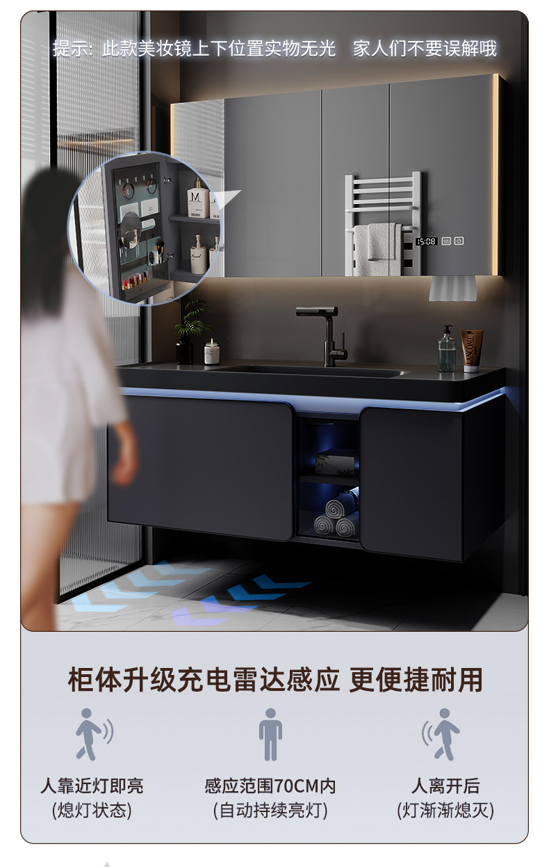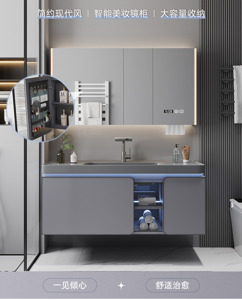 - 90 up and down lights smart mirror cabinet/skin feeling integrated basin