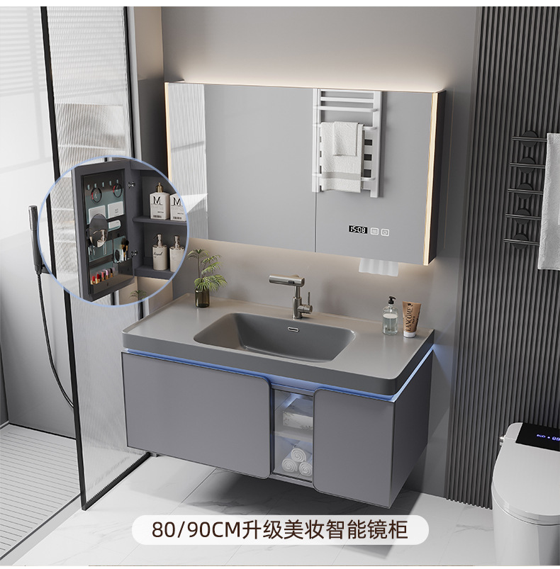 - 80 up and down lights smart mirror cabinet/skin feeling integrated basin