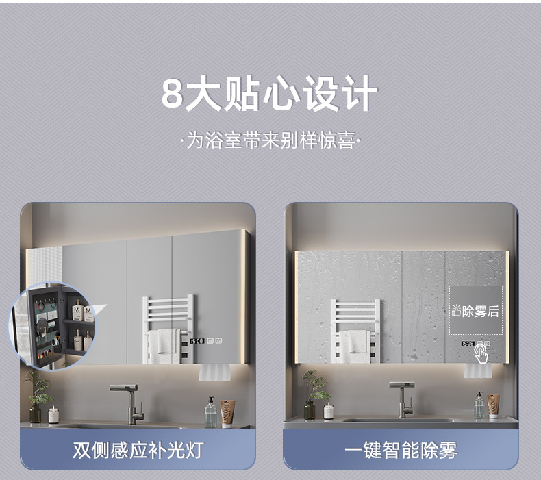 - 80 side lamp beauty smart mirror cabinet/skin feeling integrated basin
