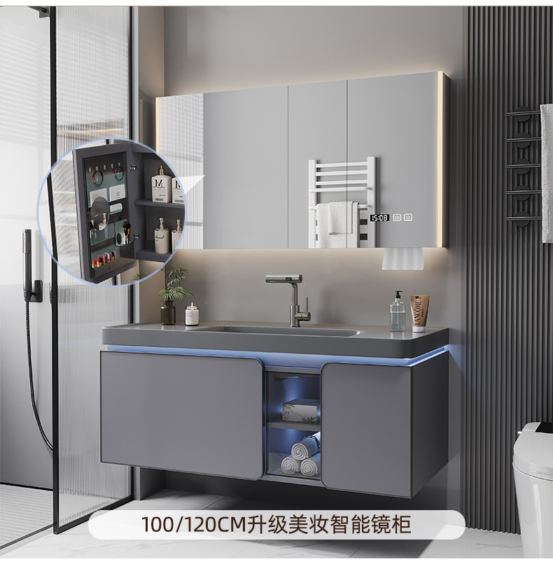 - 120 up and down lights smart mirror cabinet/integrated ceramic basin