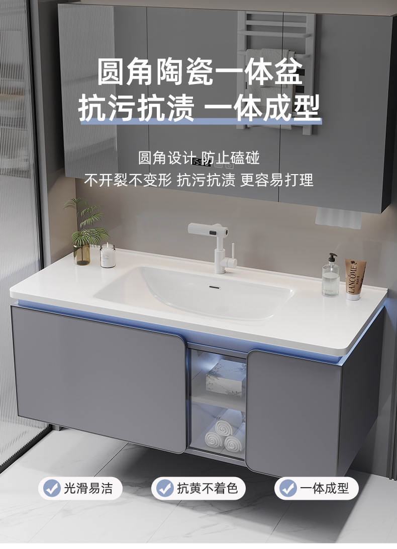 - 100 up and down lights smart mirror cabinet/integrated ceramic basin