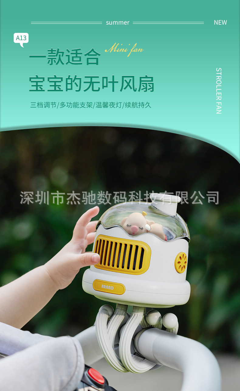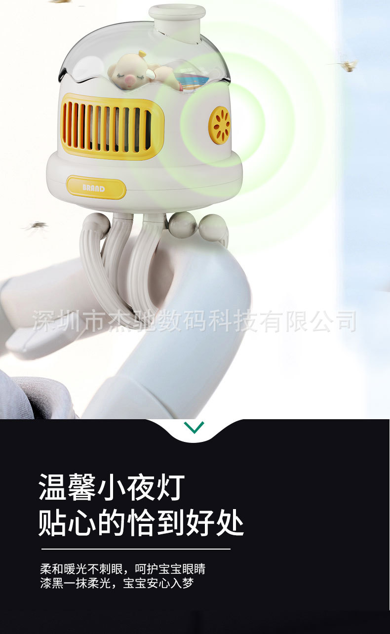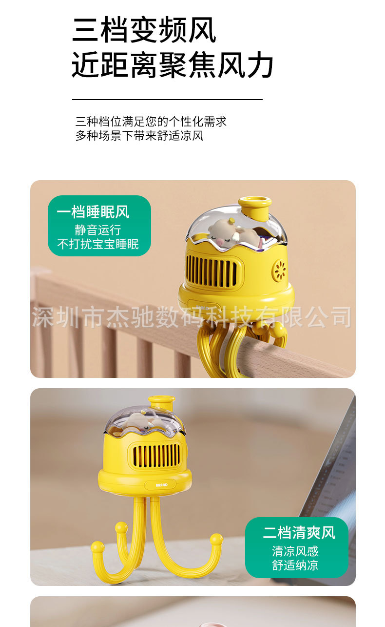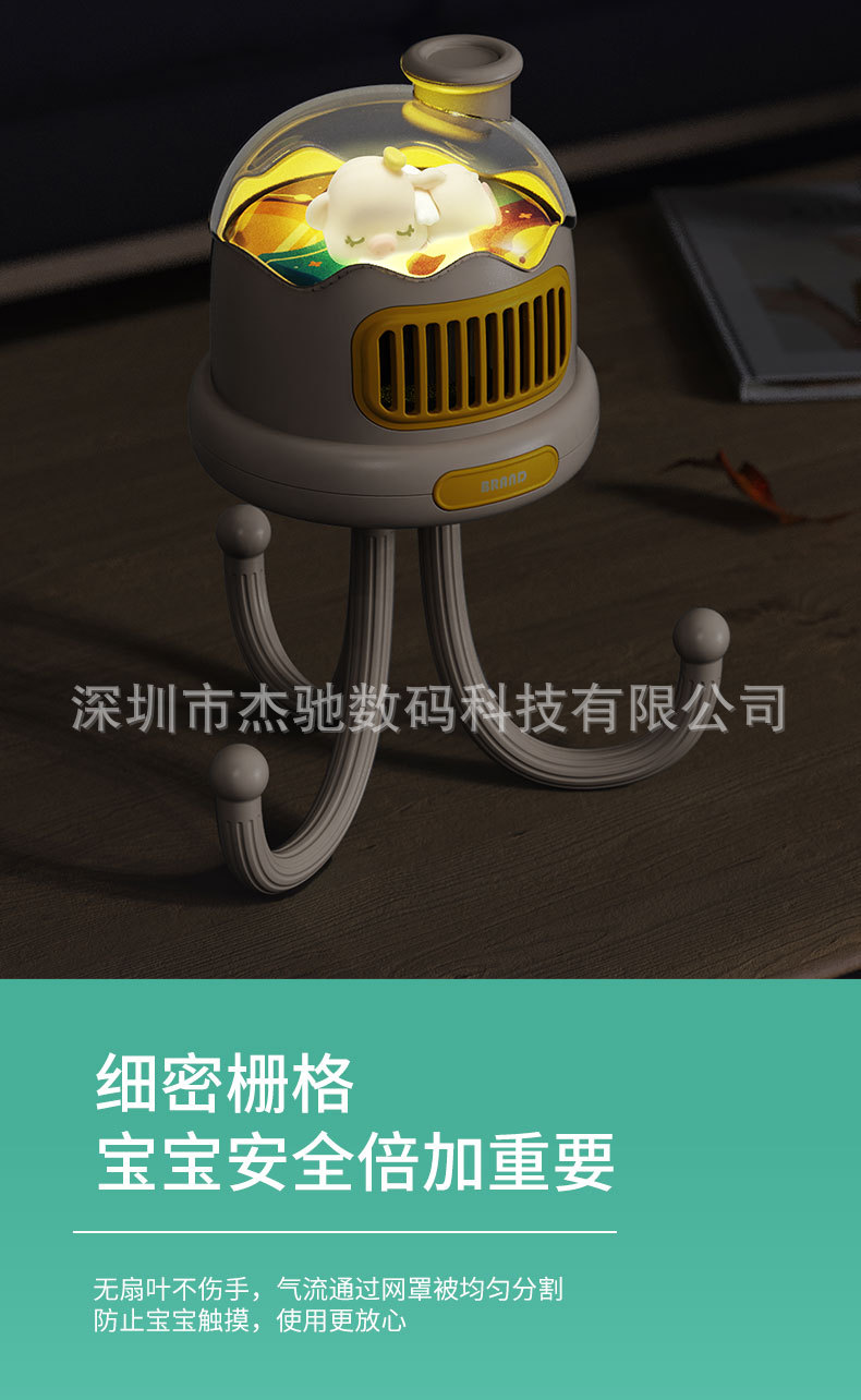 New stroller fan student dormitory mute usb clip on octopus children handheld stroller fan blade free
