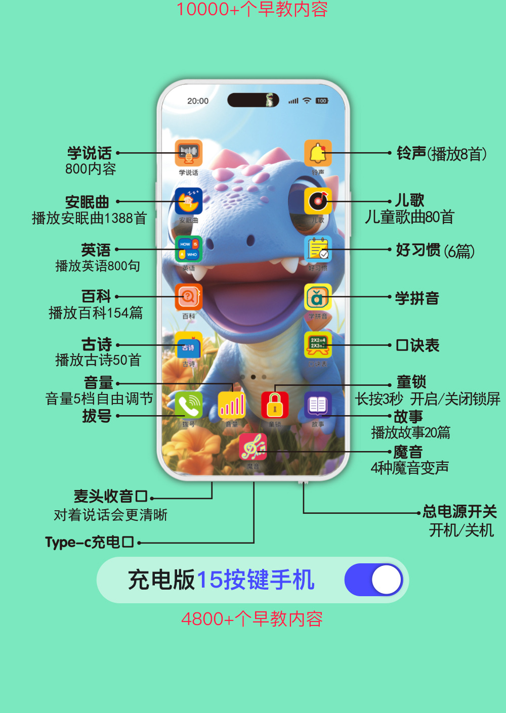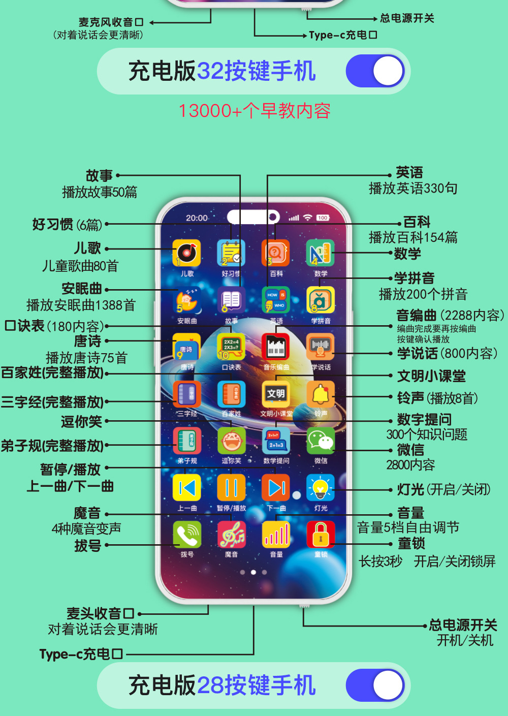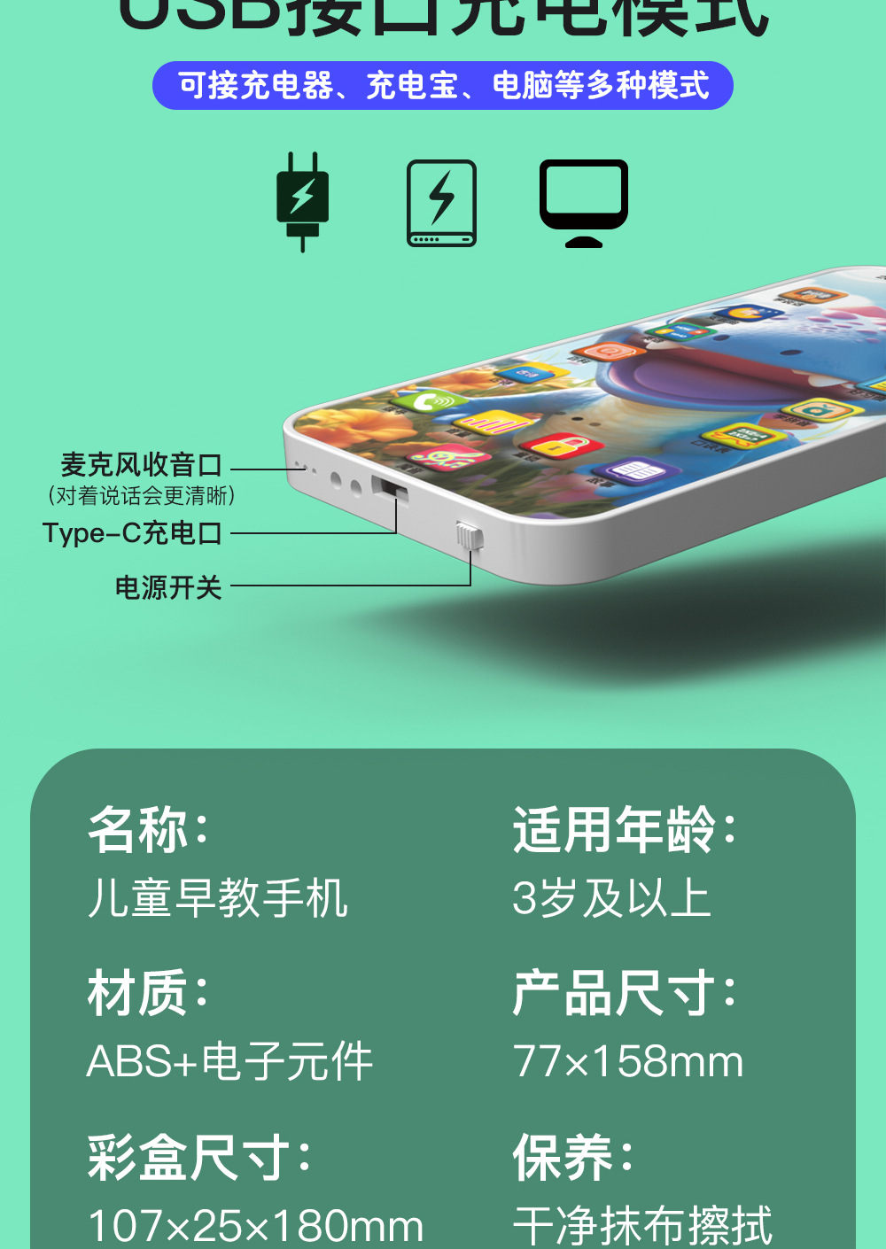 New touch screen multi functional early education mobile phone simulation toy baby educational children boys and girls phone rechargeable