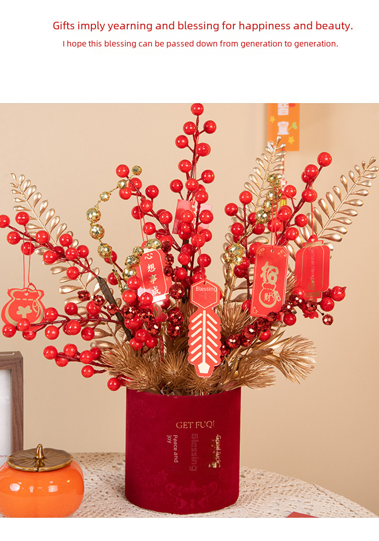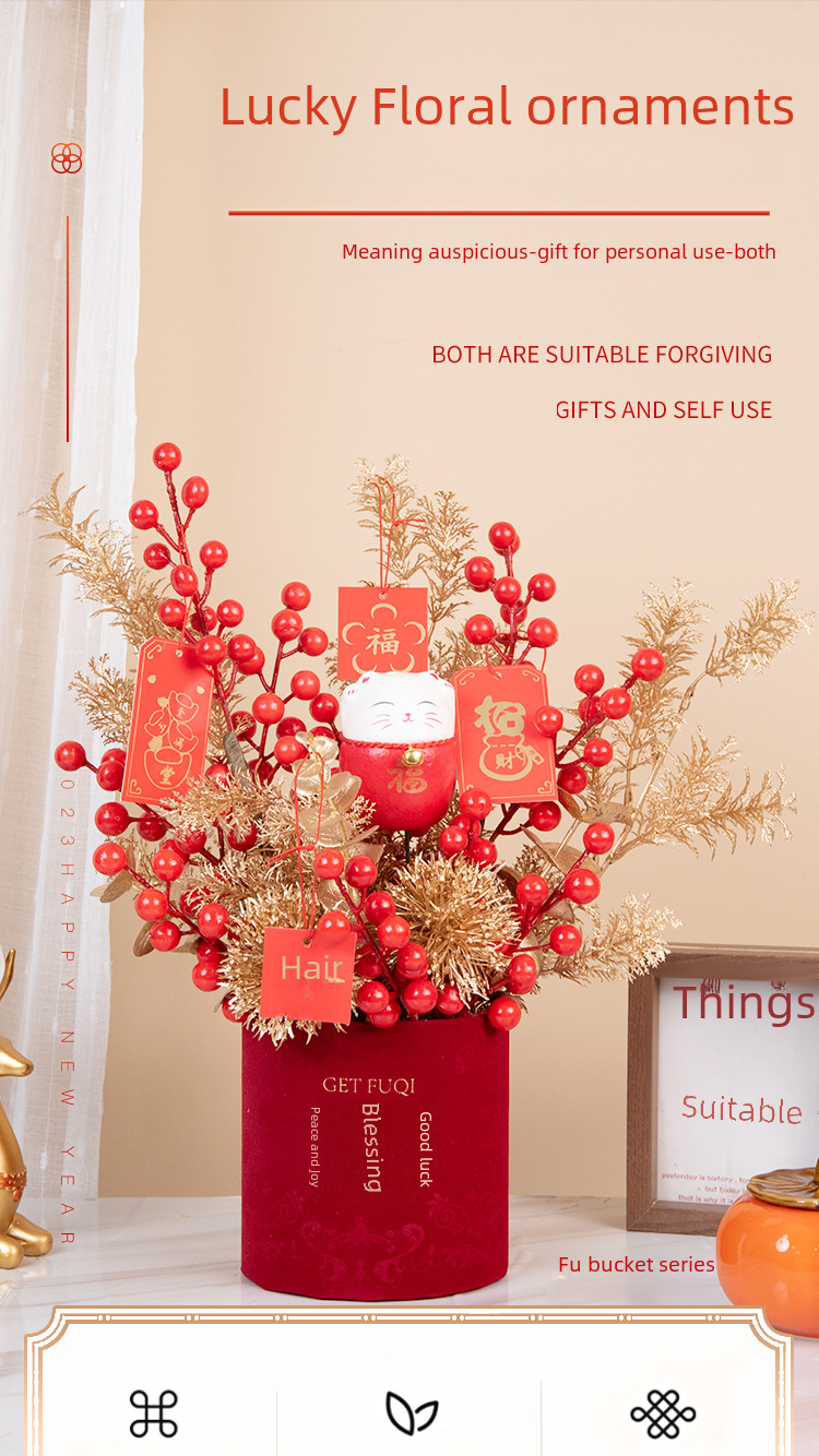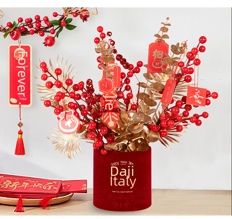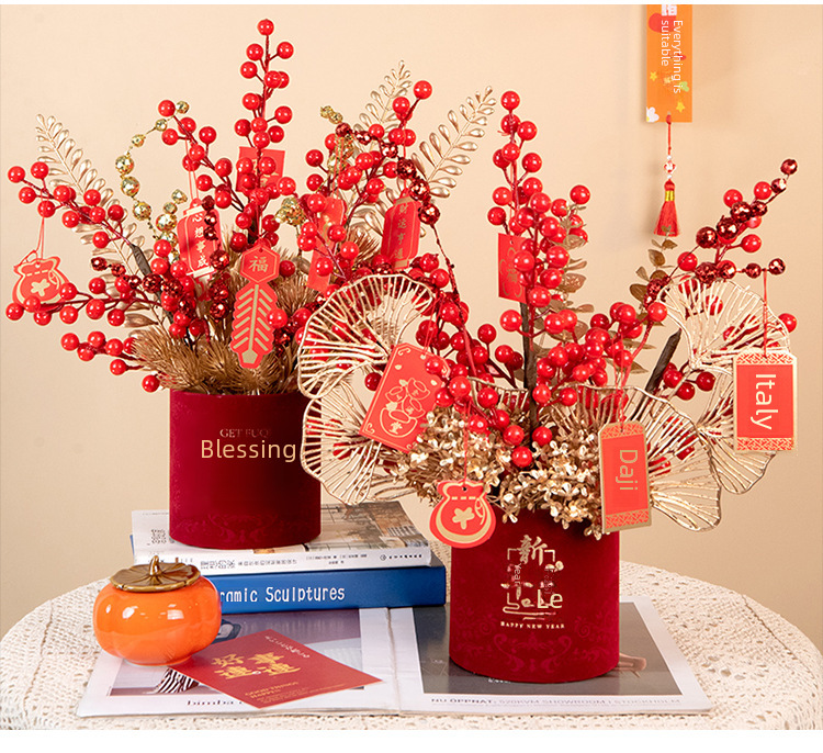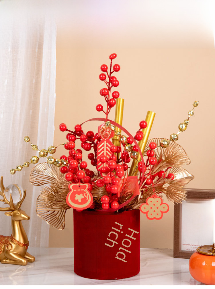 New year fortune fruit bucket artificial flower decoration housewarming new home red fruit artificial flower flower arrangement living room entrance decoration