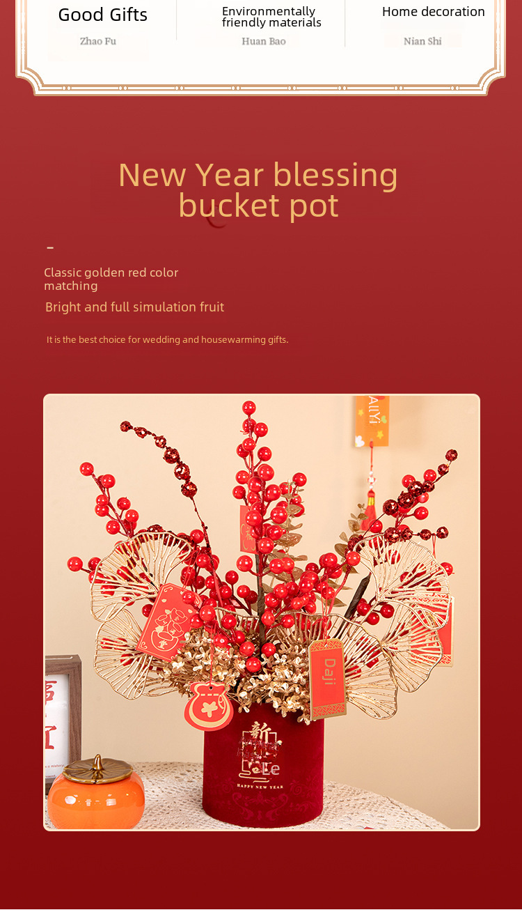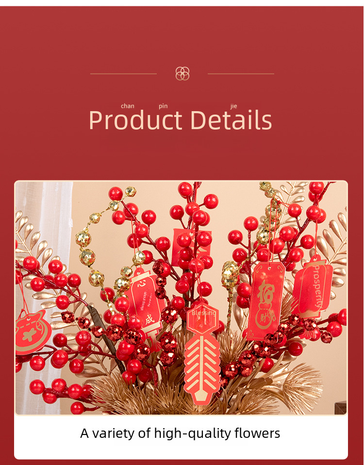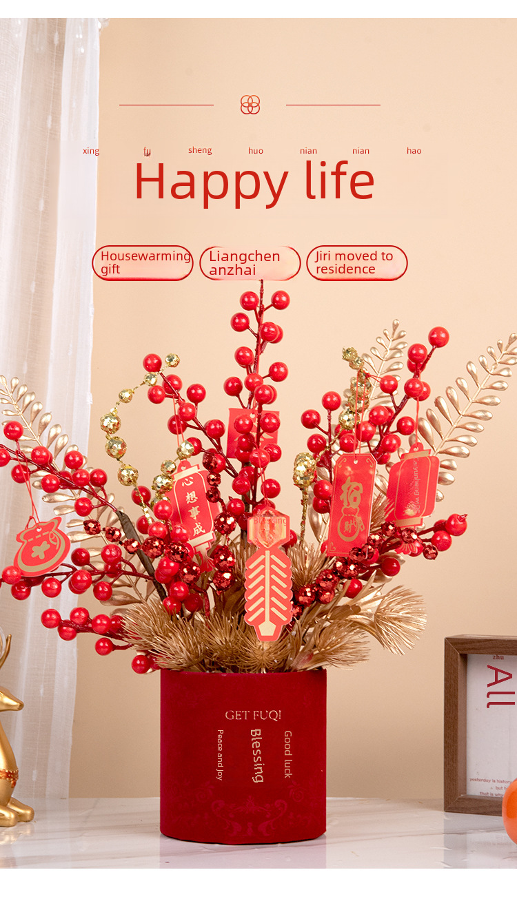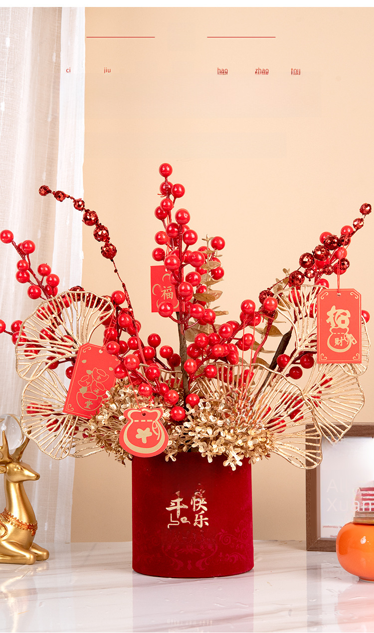New year fortune fruit bucket artificial flower decoration housewarming new home red fruit artificial flower flower arrangement living room entrance decoration