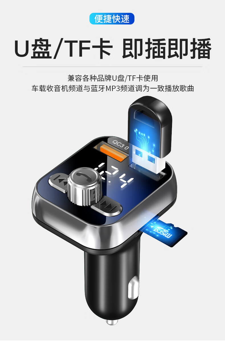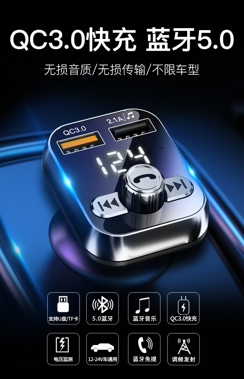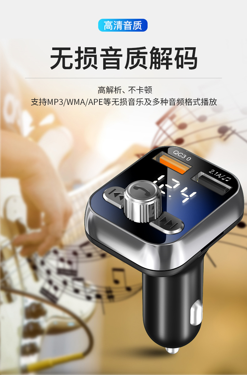 Newman car bluetooth receiver u disk car mp3 player car charger cigarette lighter one drag two QC3.