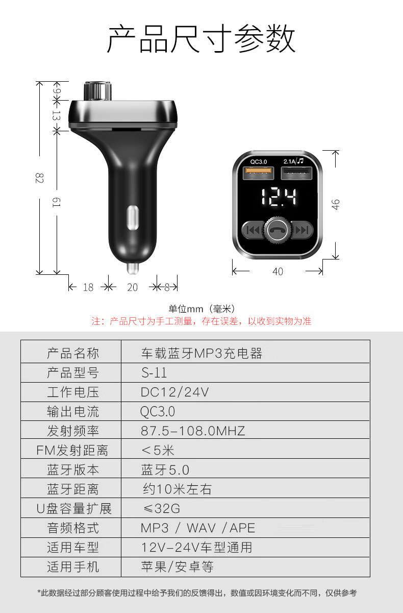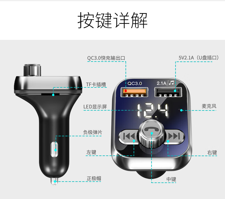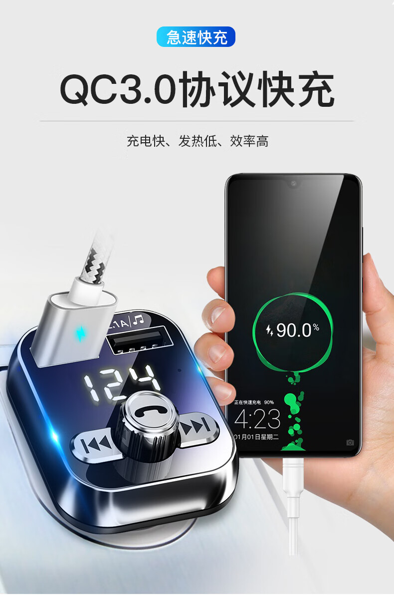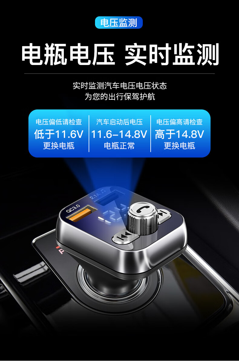 Newman car bluetooth receiver u disk car mp3 player car charger cigarette lighter one drag two QC3.