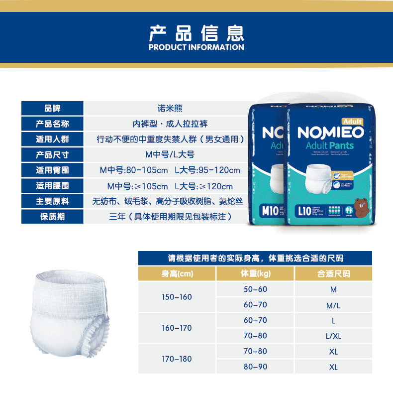 Nomi bear adult pull up pants diaper diapers for the elderly men and women adult diapers for the elderly ML large size