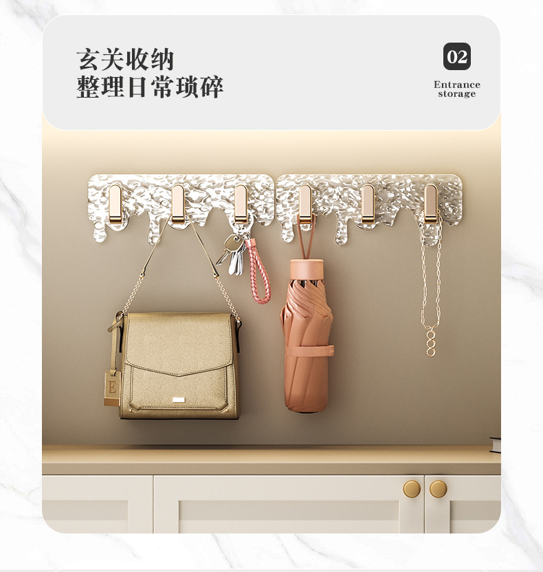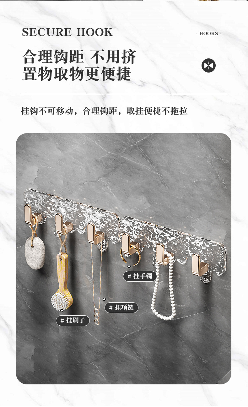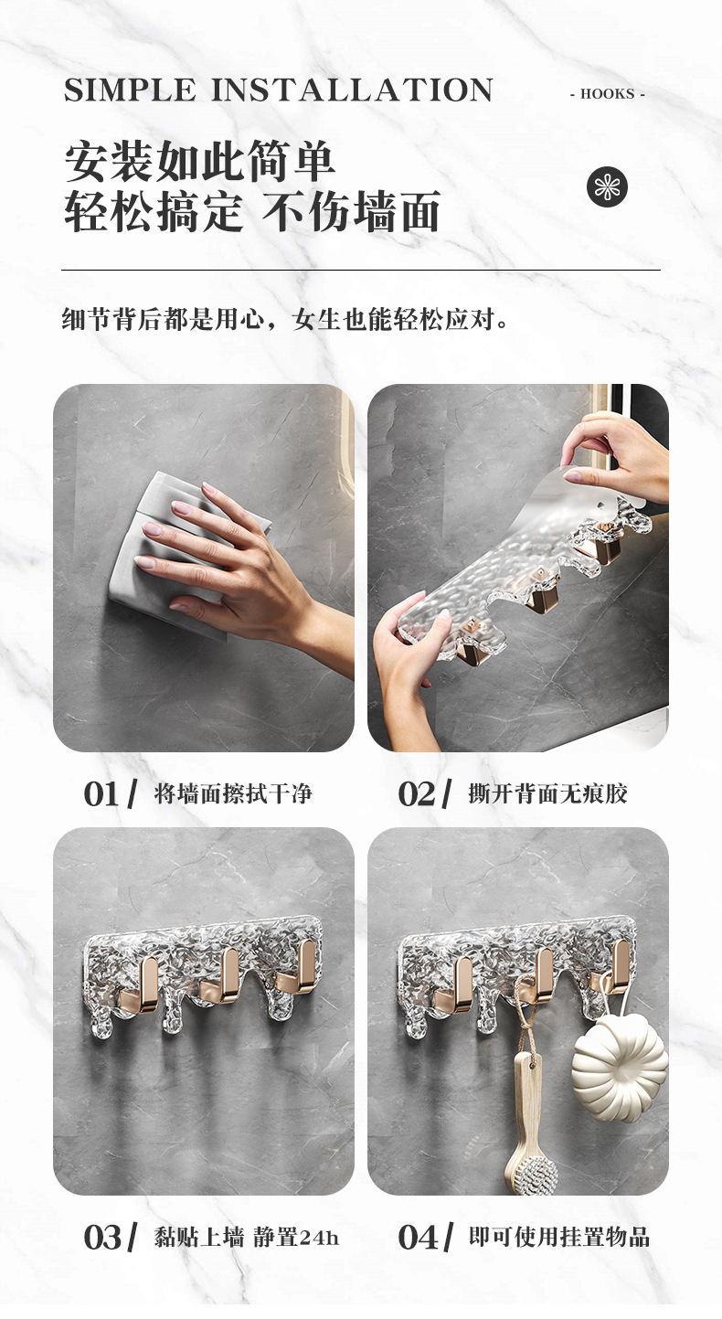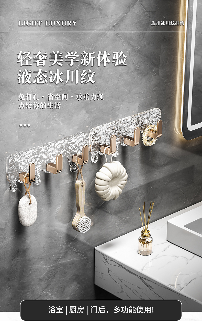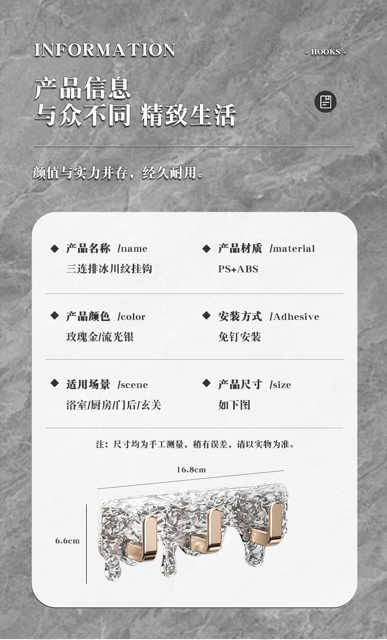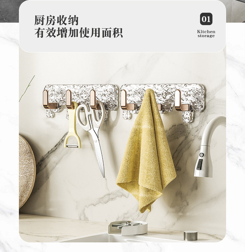 Non perforated Glacier Pattern Hook Kitchen Storage Rack Slipper Hanger Bathroom Row Hook Wall mounted Storage
