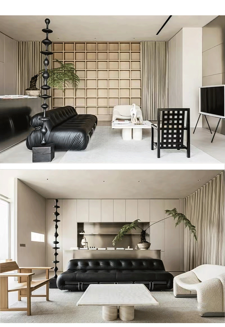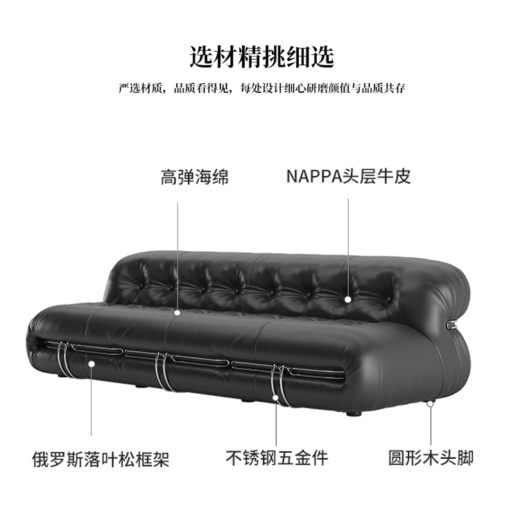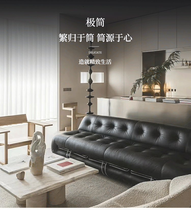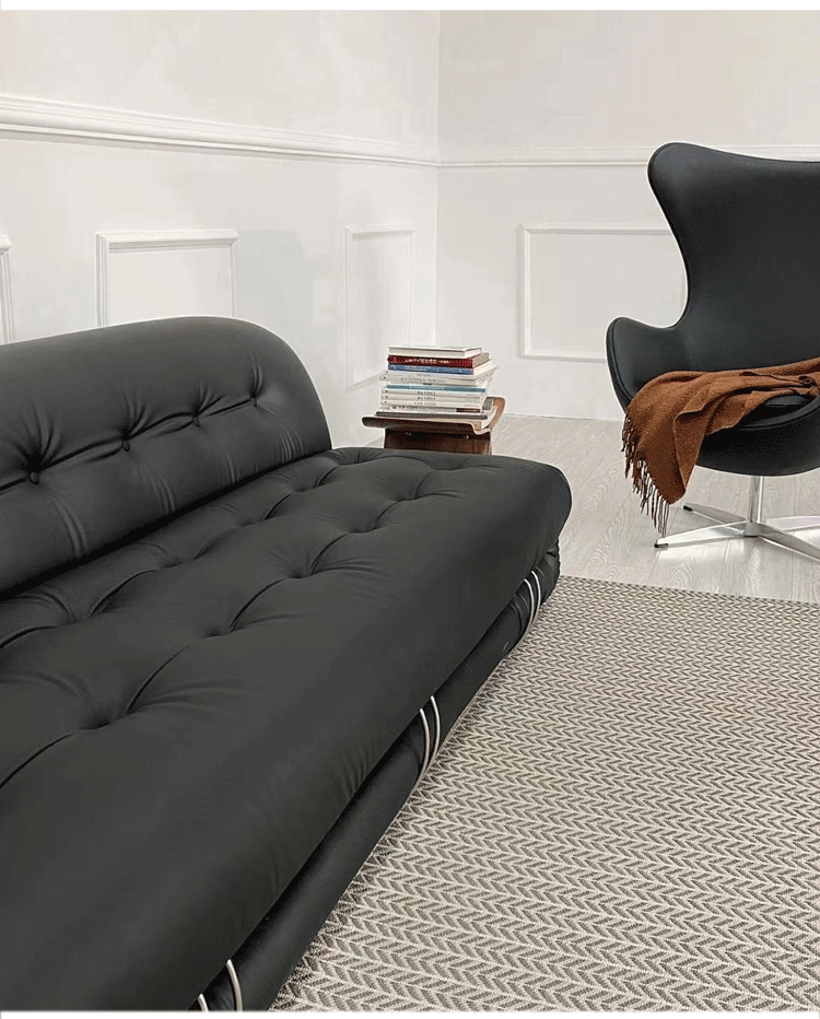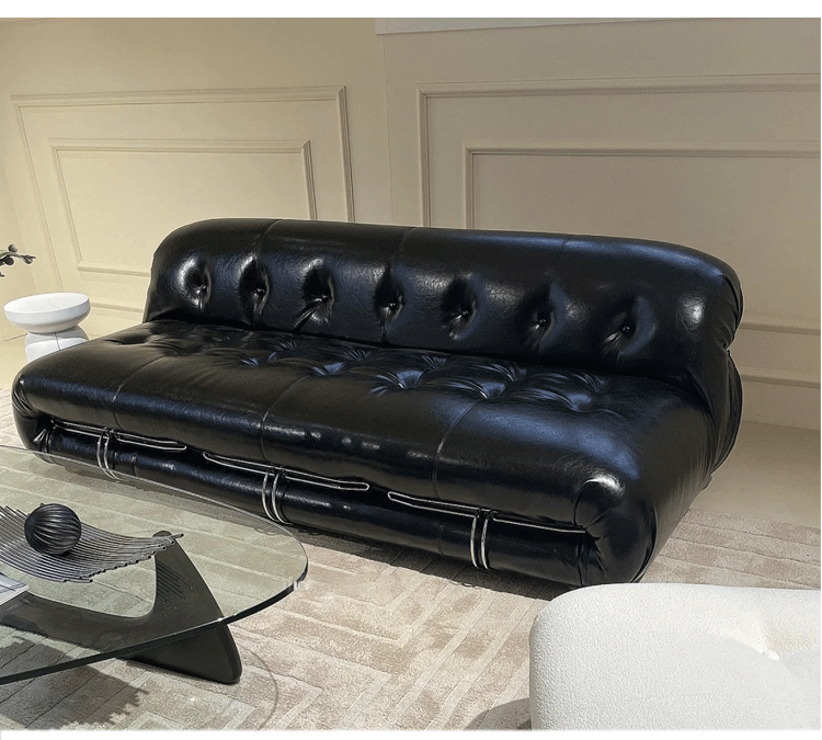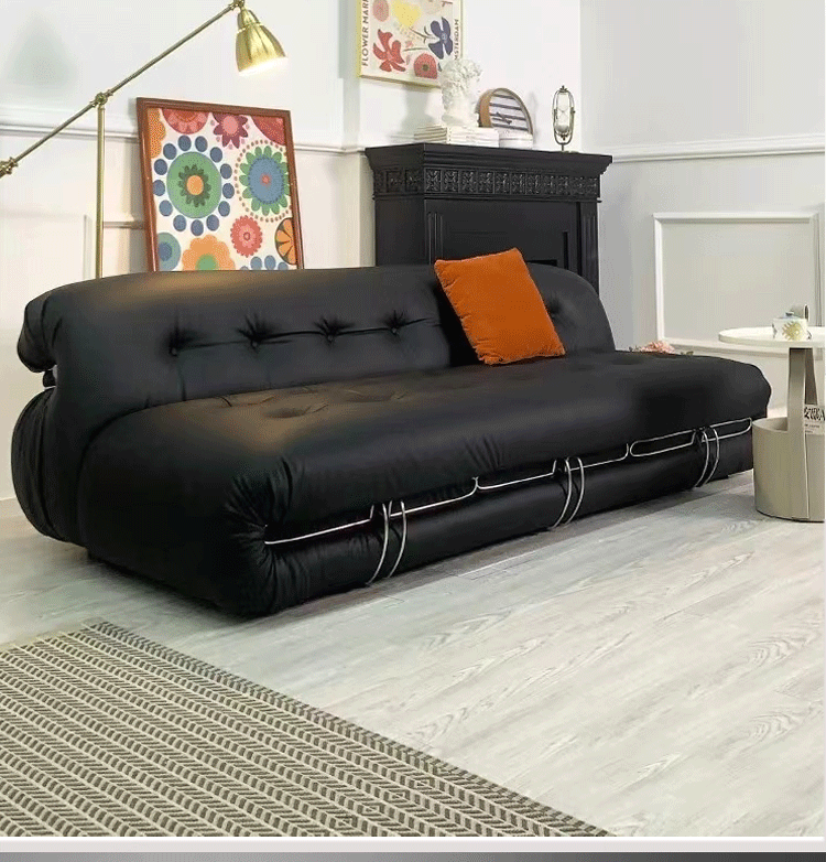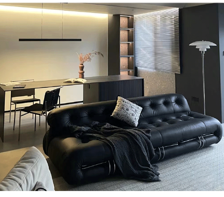 Nordic Entry Luxury Creative Hippo Genuine Leather Sofa Black Large Steel Teeth Sofa Living Room Internet Celebrity Leisure Style Sofa
