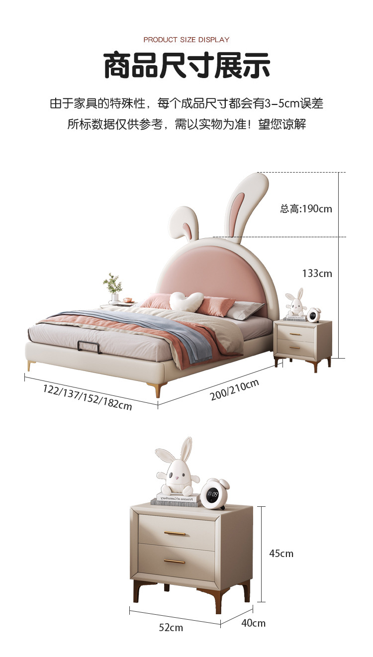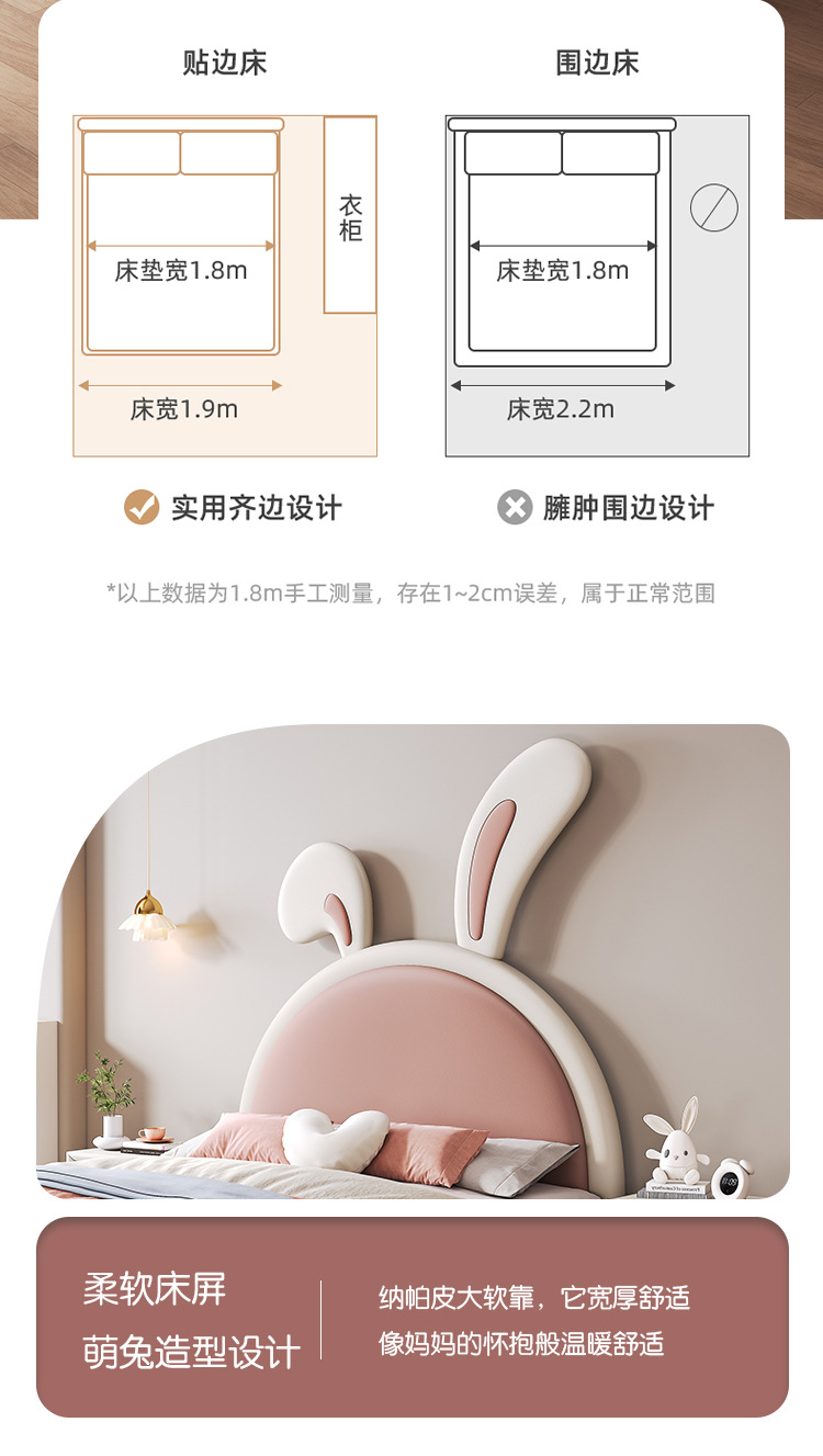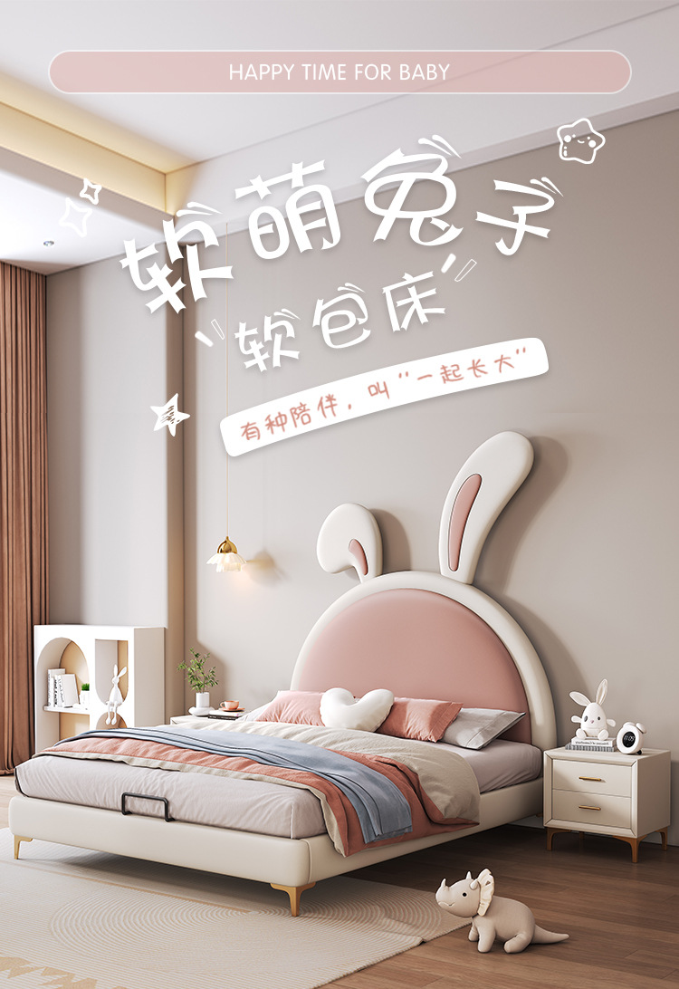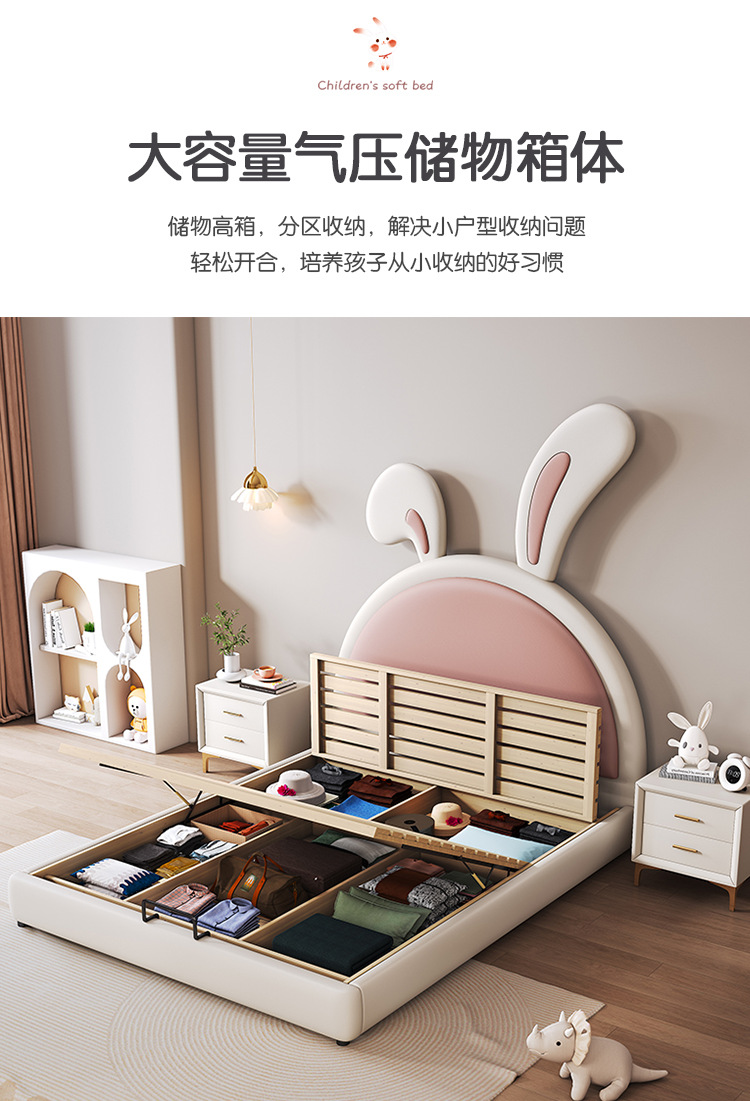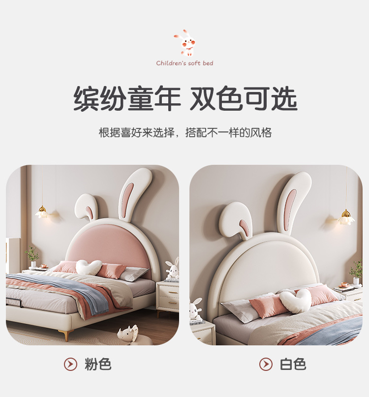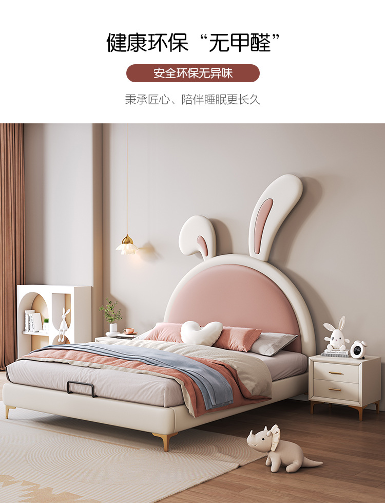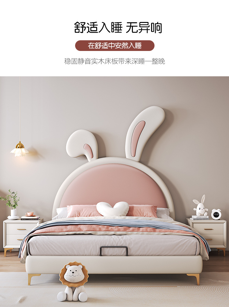 Nordic Solid Wood Soft Bag Children s Bed Light Luxury Rabbit Girl Princess Bed Simple Children s Room Tatami Double Bed