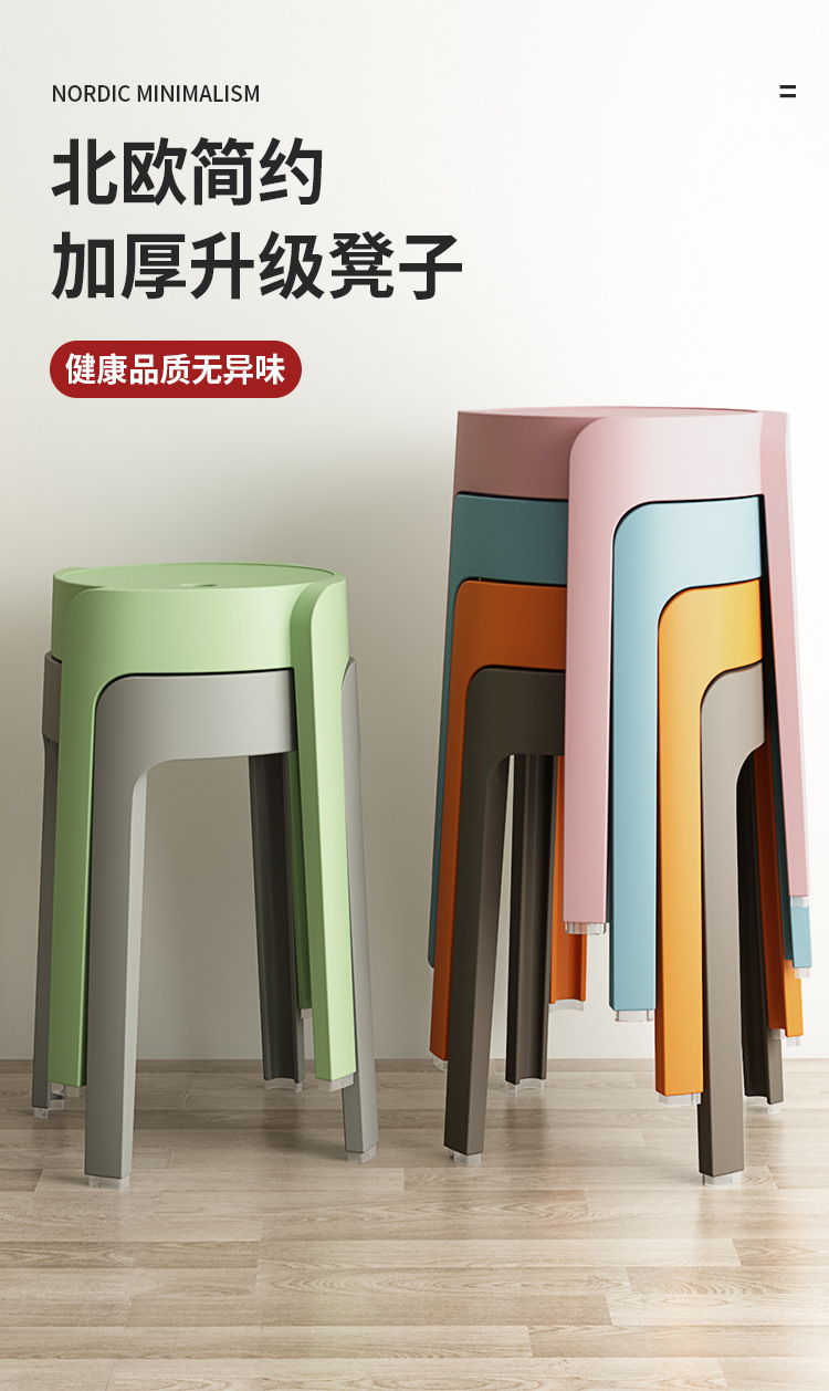 Nordic fashion round stool plastic thickened adult stool stackable dining table bench home chair spare stool high stool