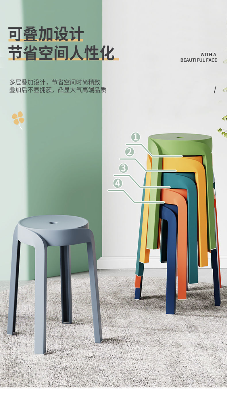 Nordic round stool plastic thickened adult stool windmill bench folding dining table stool home chair spare stool high stool