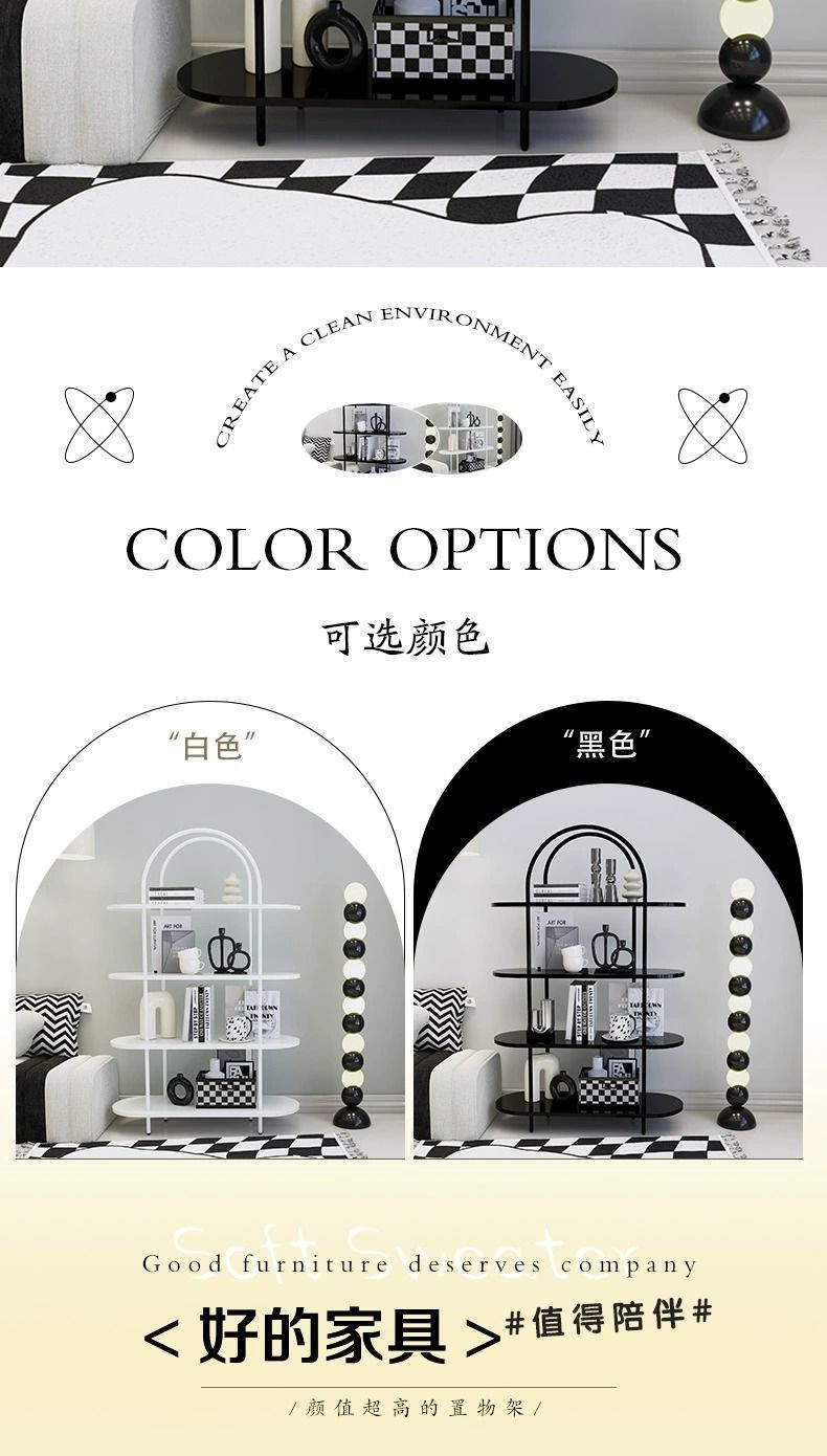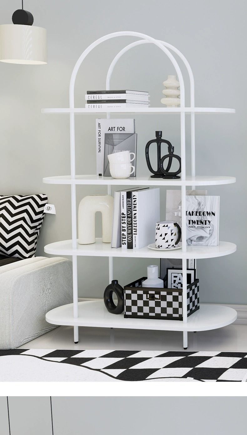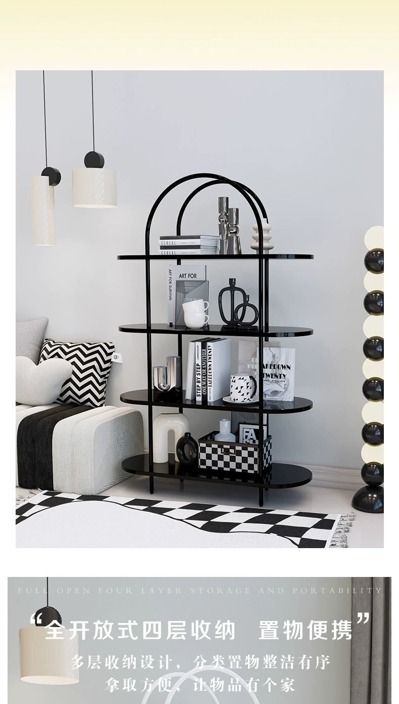 Nordic storage rack black and white simple arch display rack multi-layer storage rack floor assembly bedroom simple storage rack