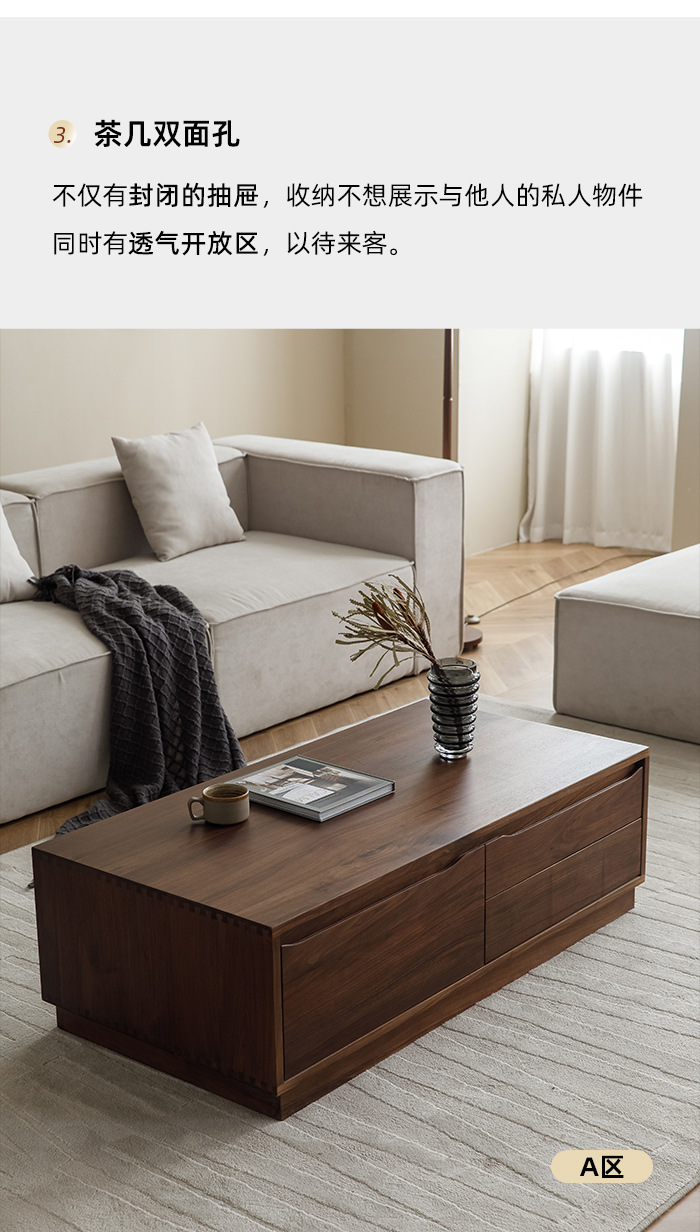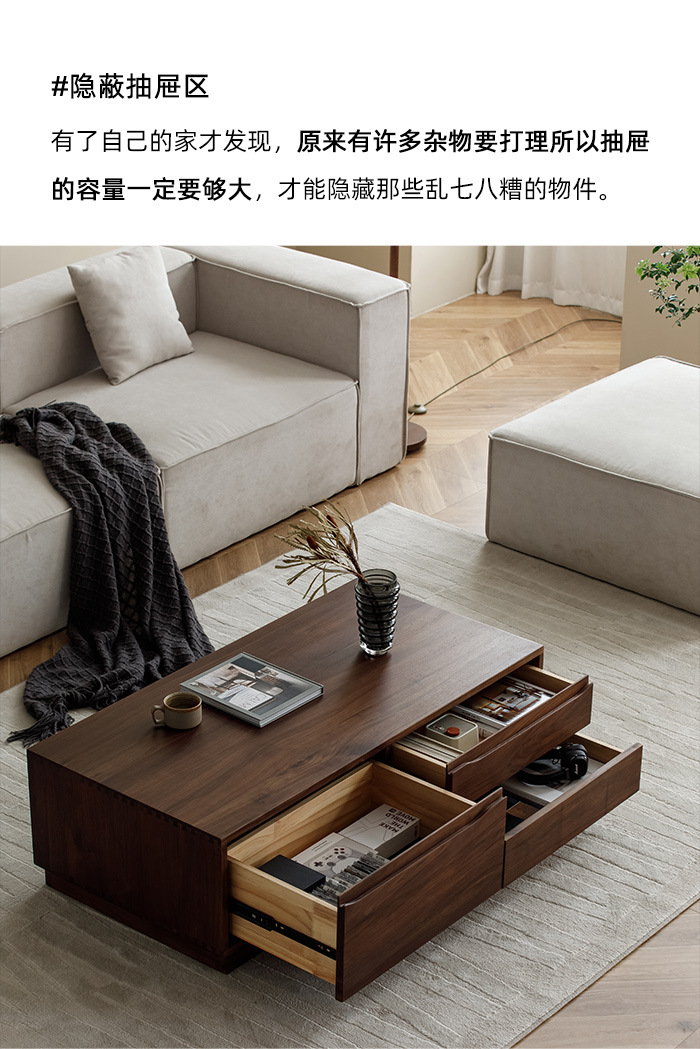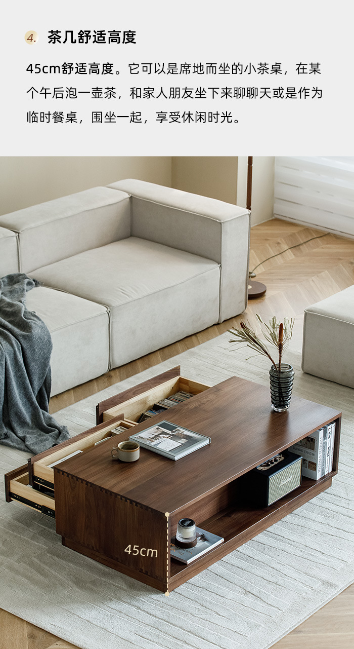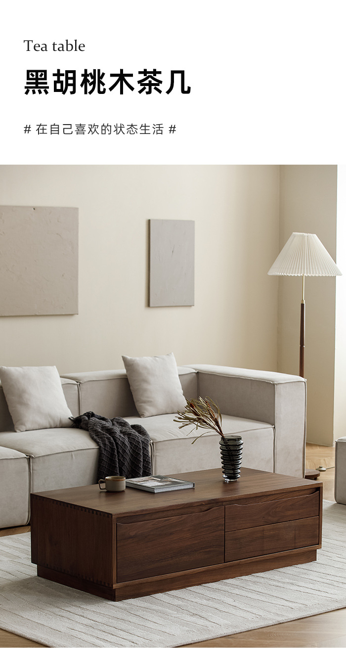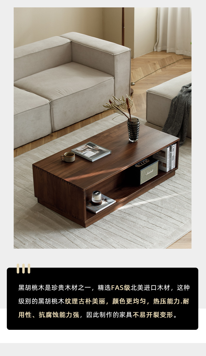 North American black walnut solid wood tea table cherry wood log living room home small apartment square simple tea table low table