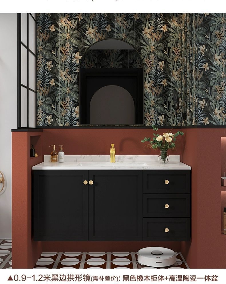 Oak Washing Table Rock Board Bathroom Cabinet Retro Washing Table Basin Integrated French Bathroom Cabinet French Retro Bathroom Cabinet