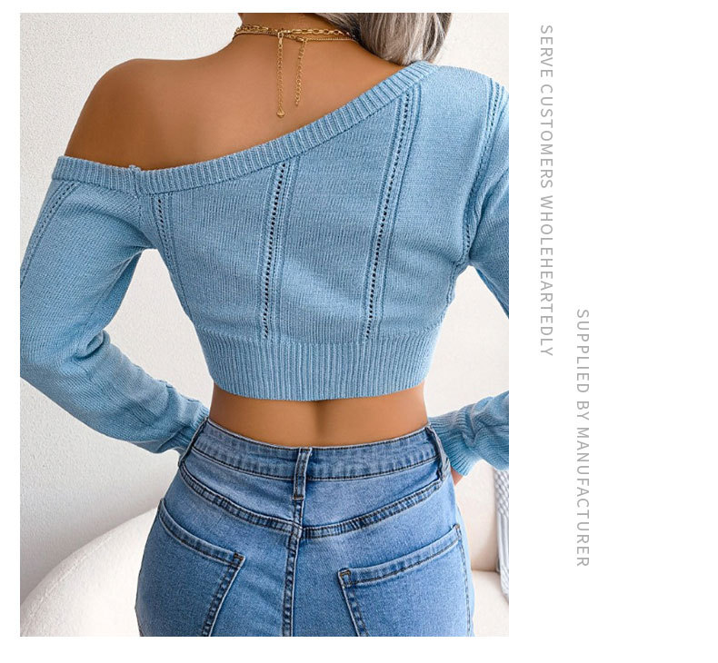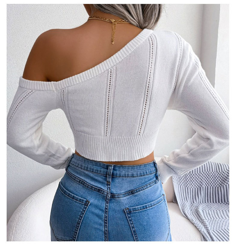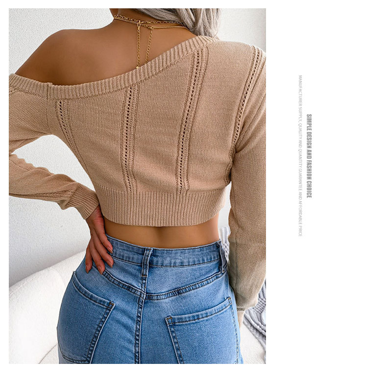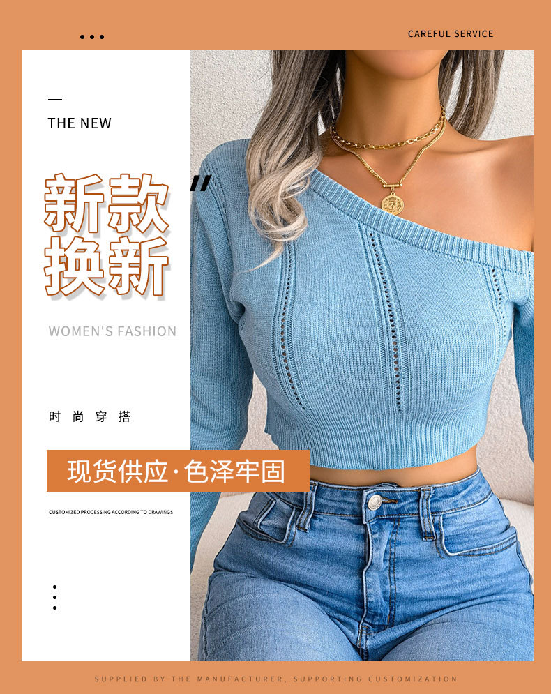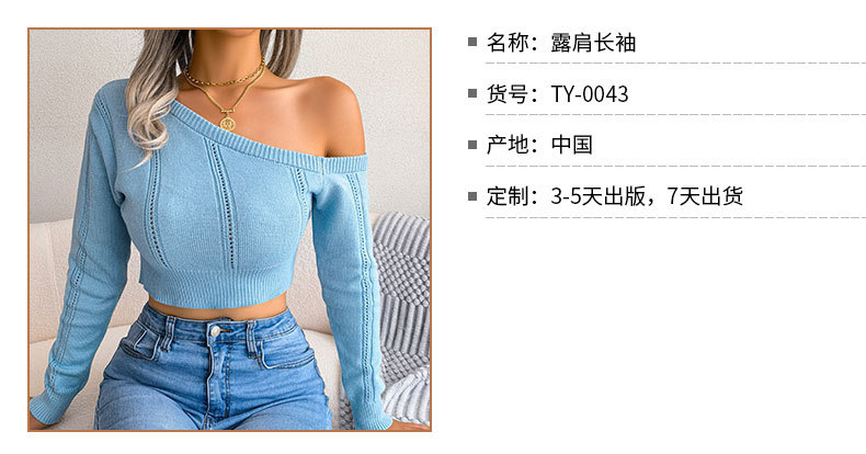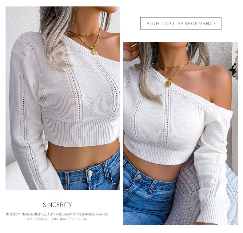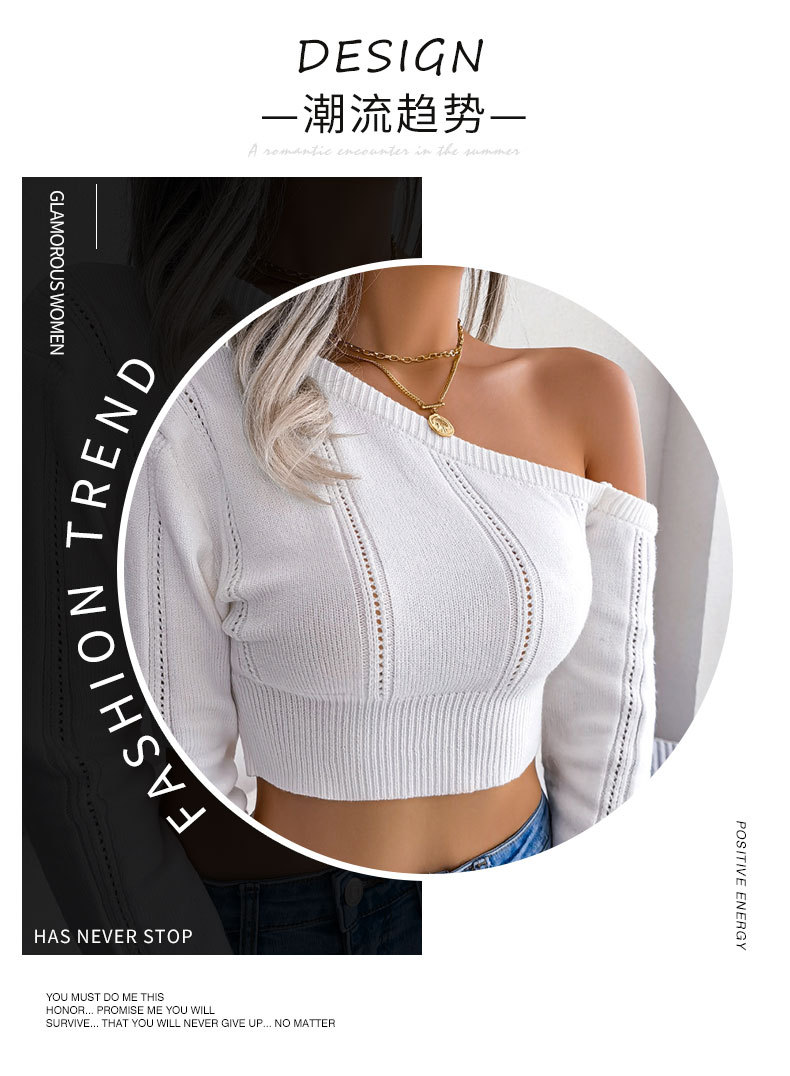 Off the shoulder long sleeve hollow out long sleeve off the navel sweater fashionable sexy short off the navel sweater sweater top for women