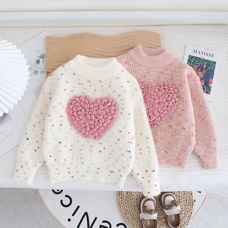 One piece delivery 2023 autumn and winter New thickened love knitted fleece sweater girls pullover