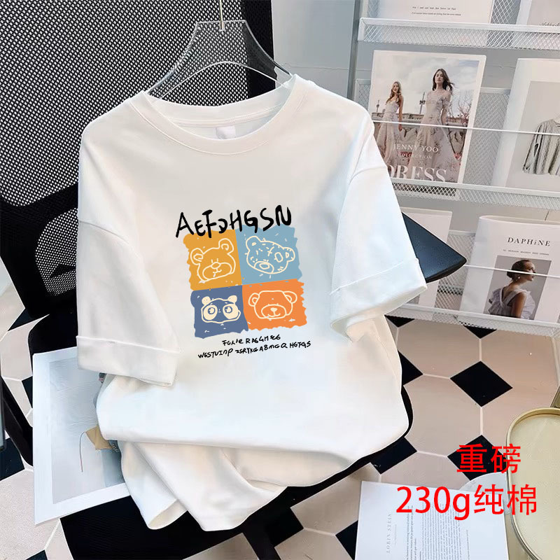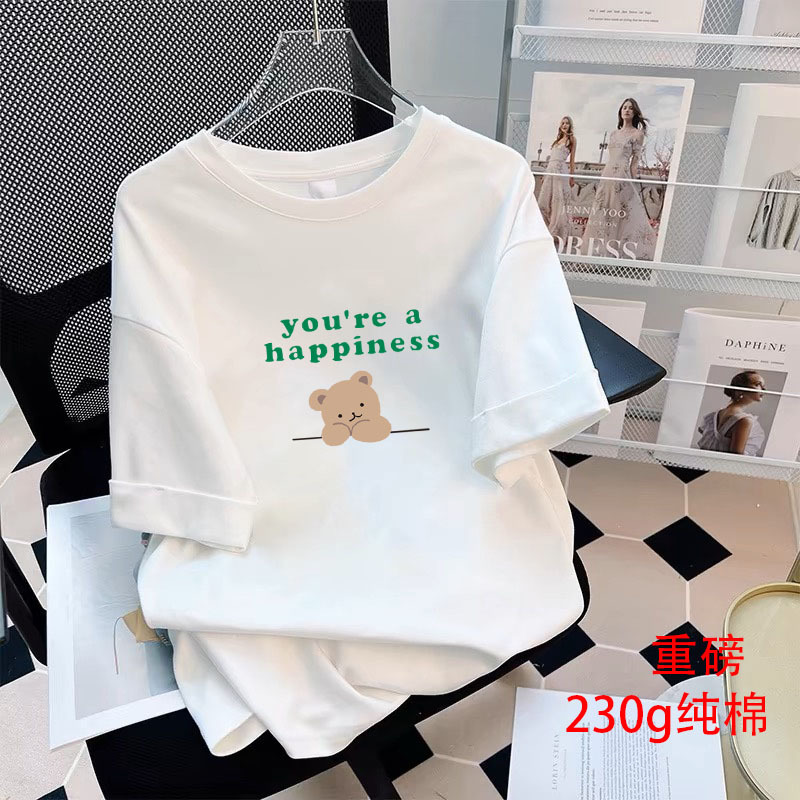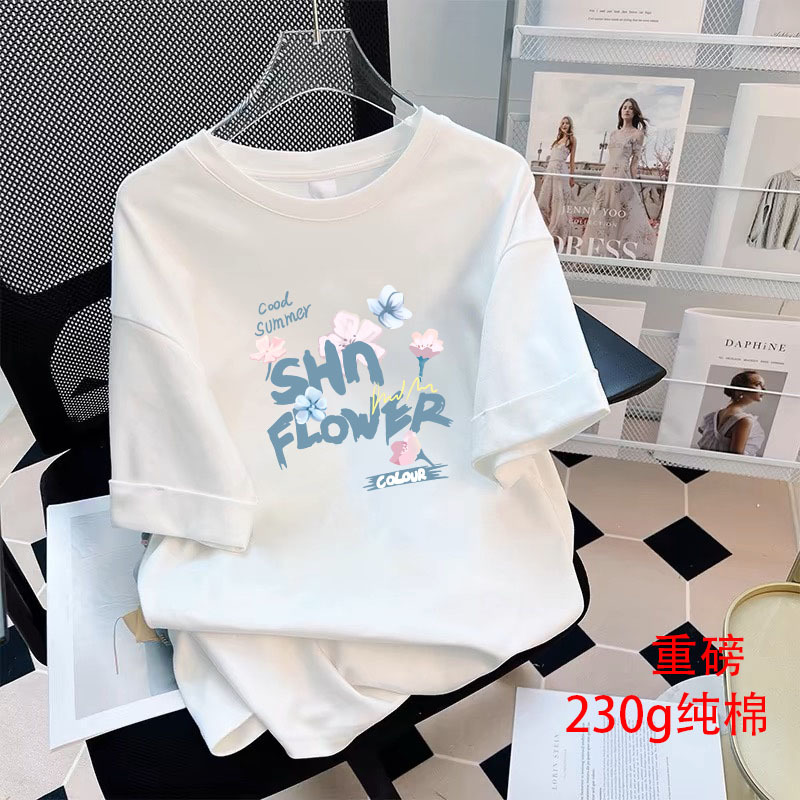 One piece delivery pure cotton white short sleeved T shirt women s plus size drop shoulder fashion brand women s loose half sleeved student T Shirt wholesale