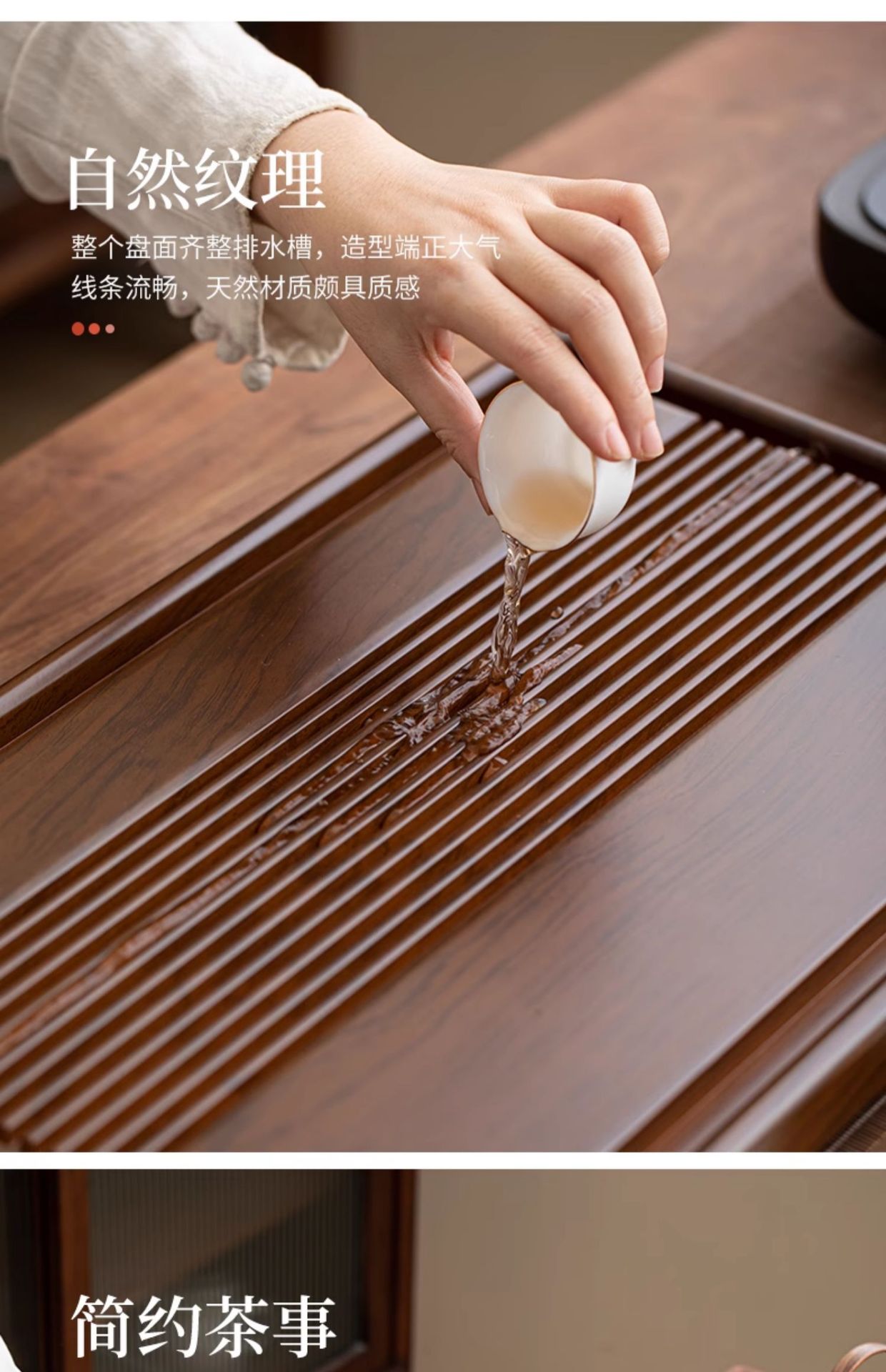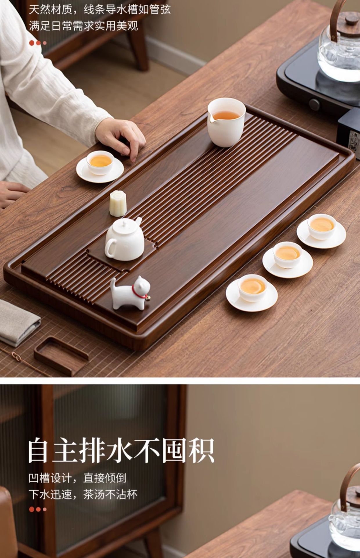 One-piece tea tray household simple kung fu tea set tea tray solid wood whole rectangular living room new tea table