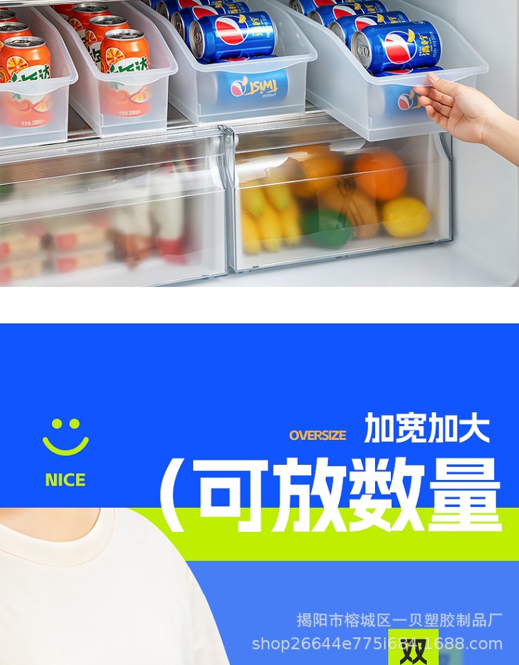 Open refrigerator storage box plastic drawer type vegetable and fruit storage box refrigerated storage box beverage basket