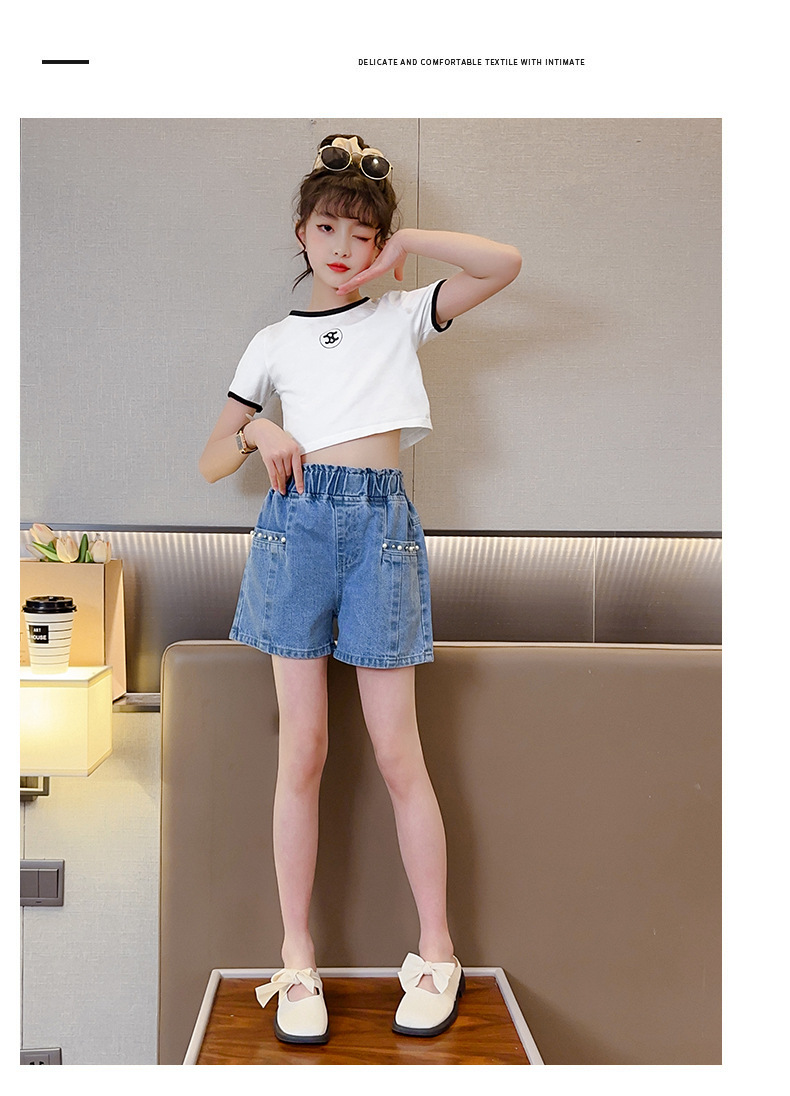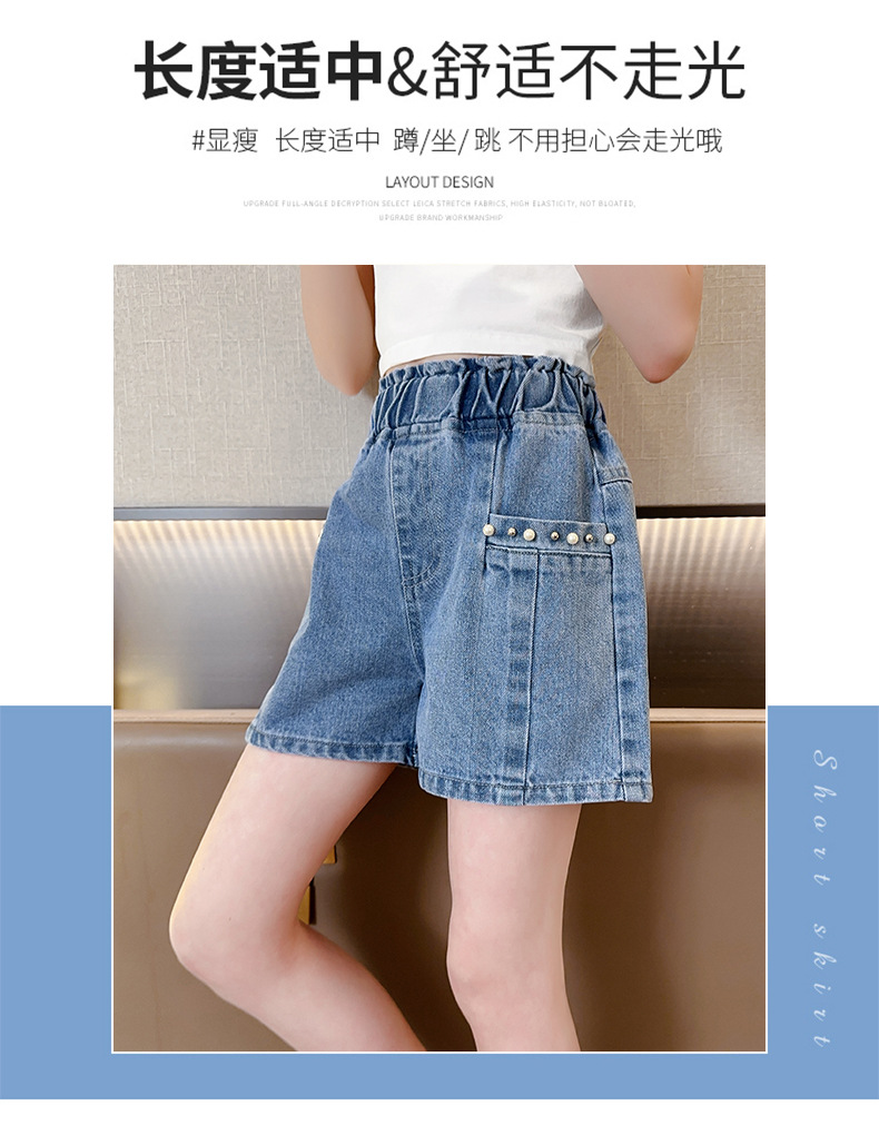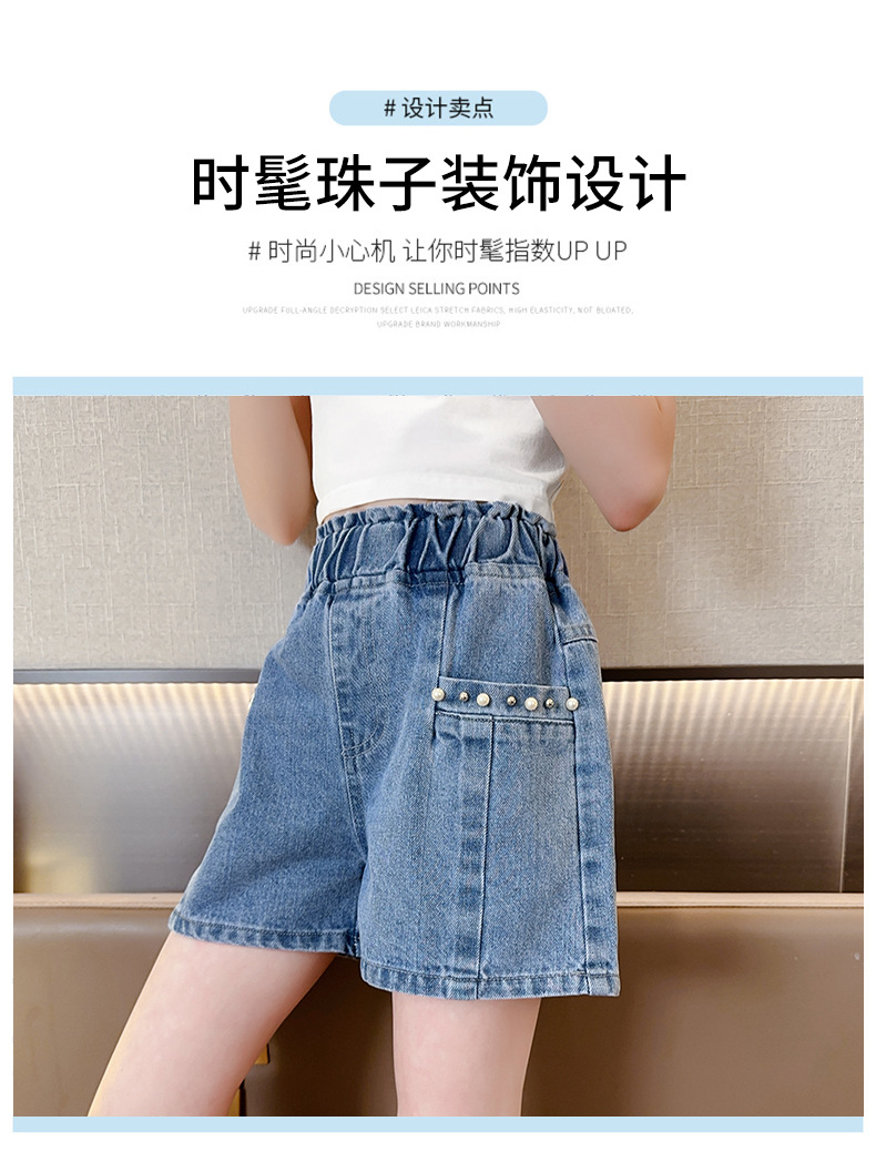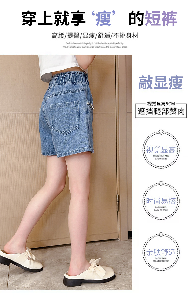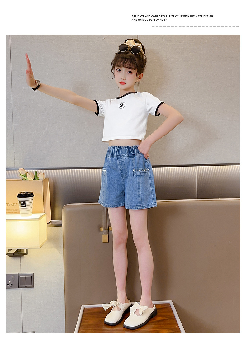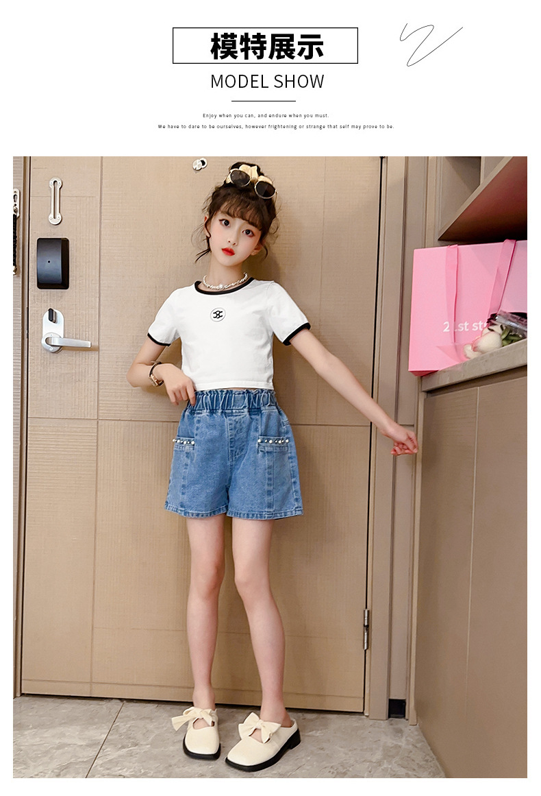 Orange Tiger Girls Denim shorts Summer 2024 New style fashionable all matching jeans for middle and big children and students Summer