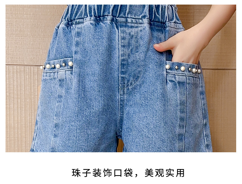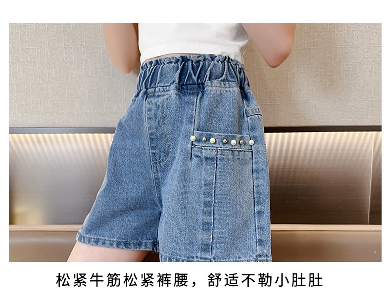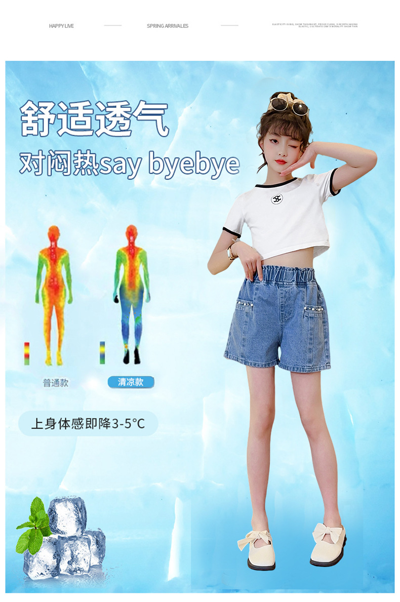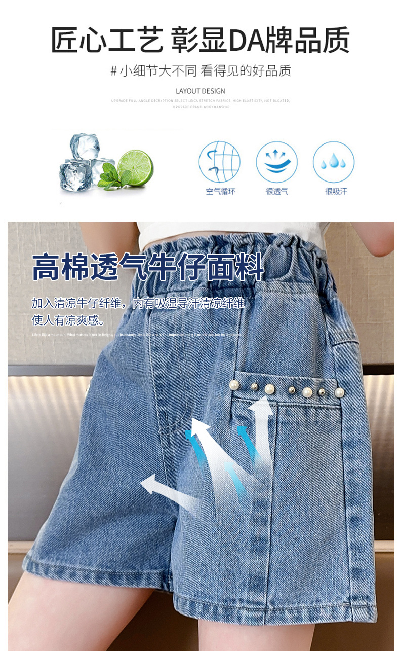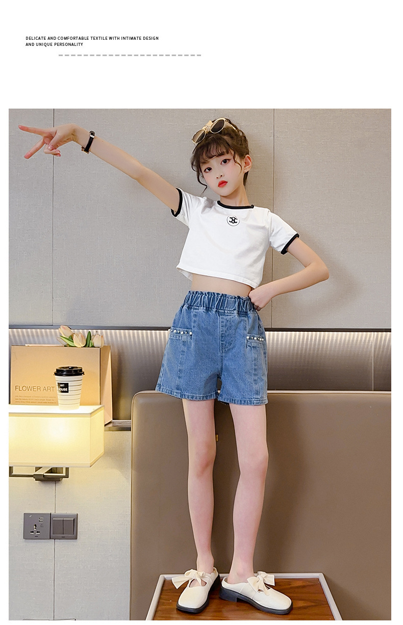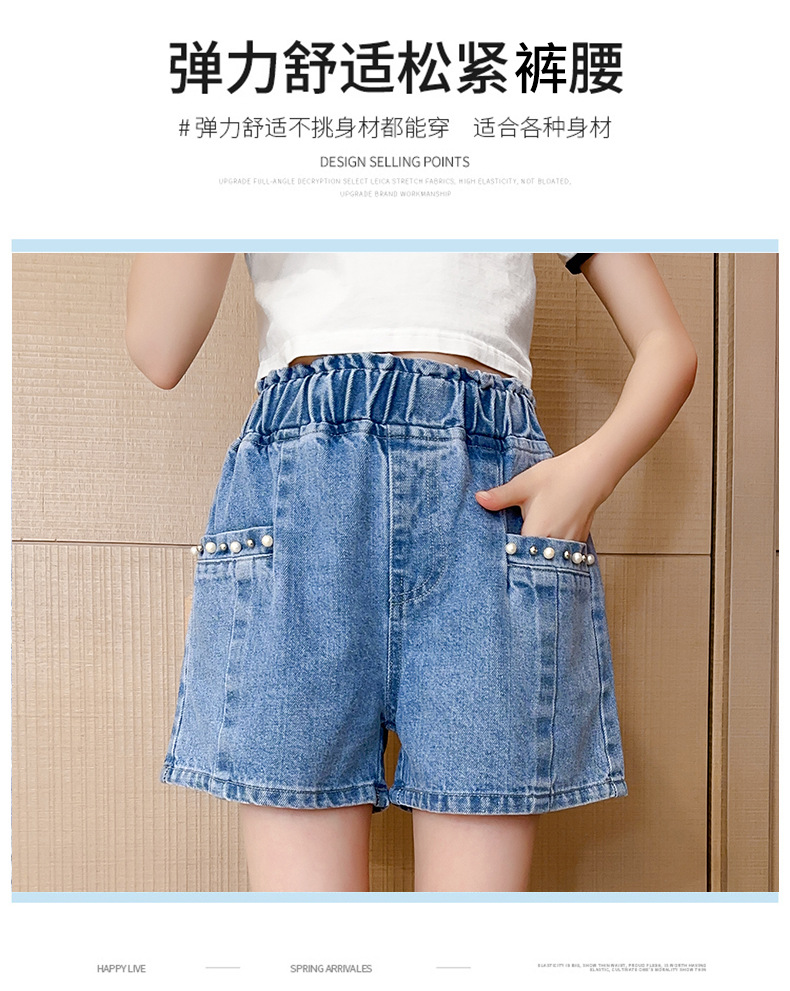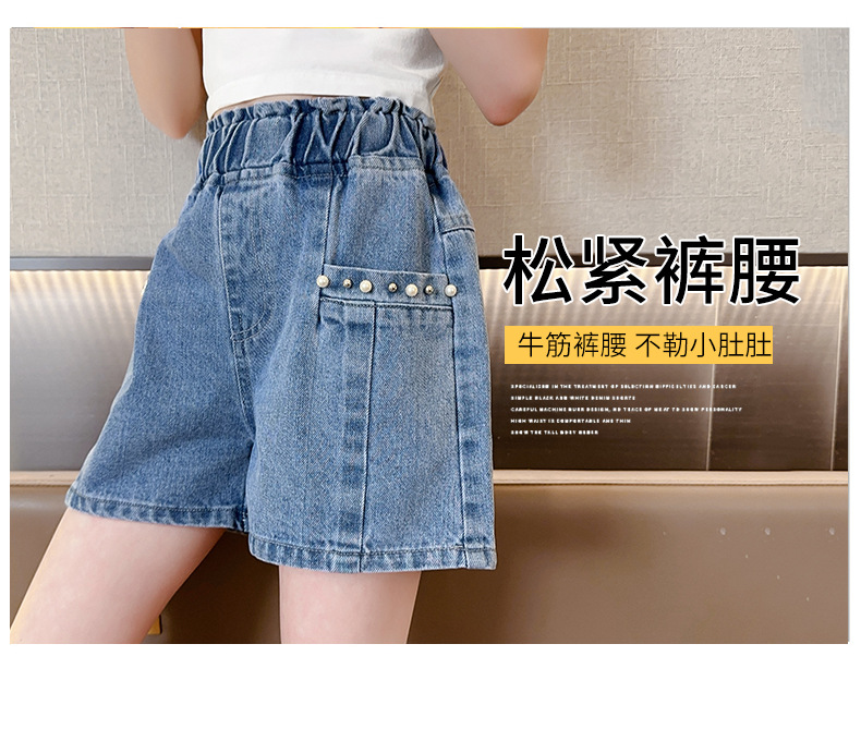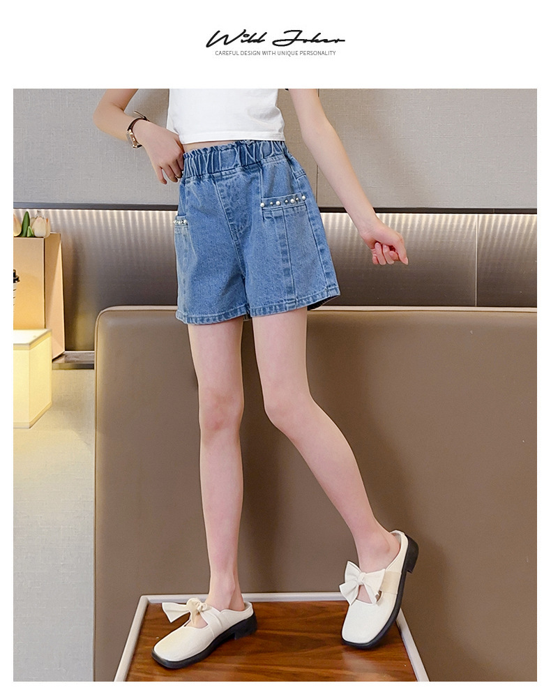 Orange Tiger Girls Denim shorts Summer 2024 New style fashionable all matching jeans for middle and big children and students Summer