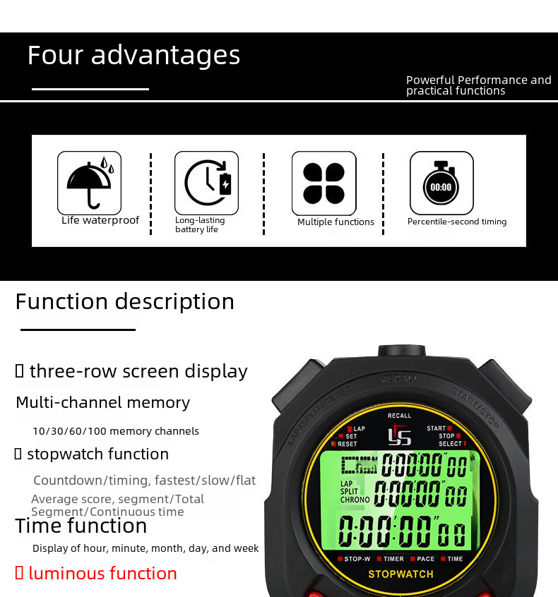 Original manufacturers wholesale Yisheng electronic luminous stopwatch timer professional training referee code table running track and field