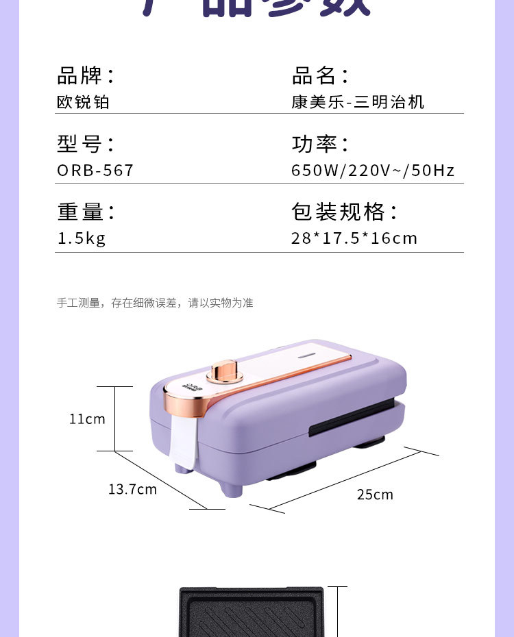 Ourui platinum kangmeile-sandwich maker ORB-567