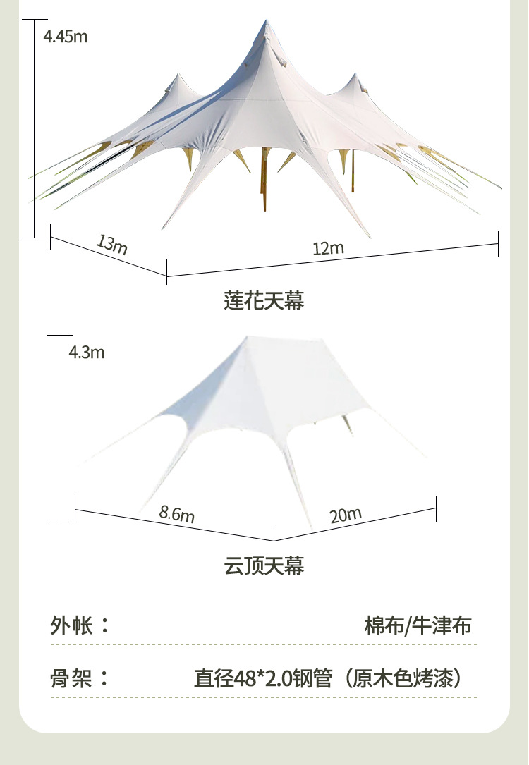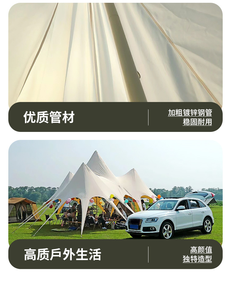 Outdoor Camp Wanchong Mountain Double Three Peaks Sky Curtain Camping Seaside Beach Tent Super Large Cloud Top Lotus Sunshade Sky Curtain