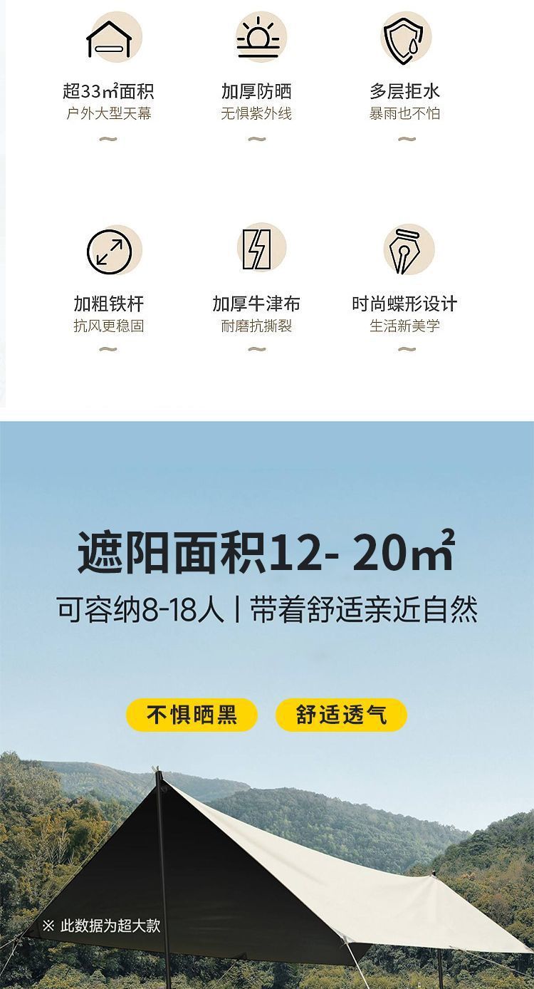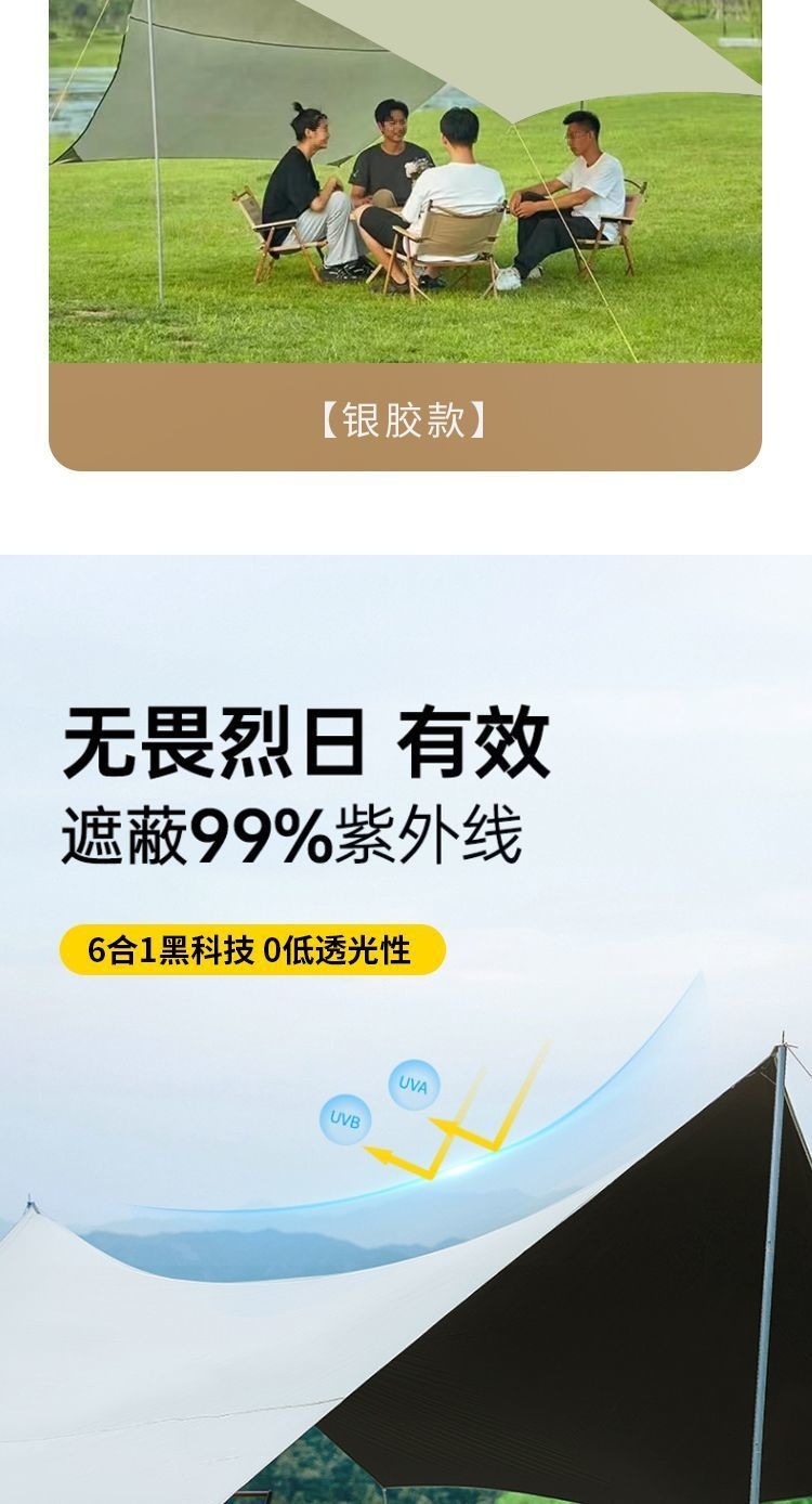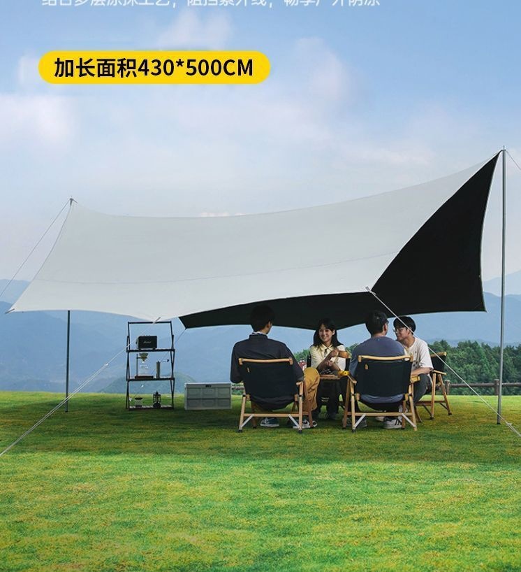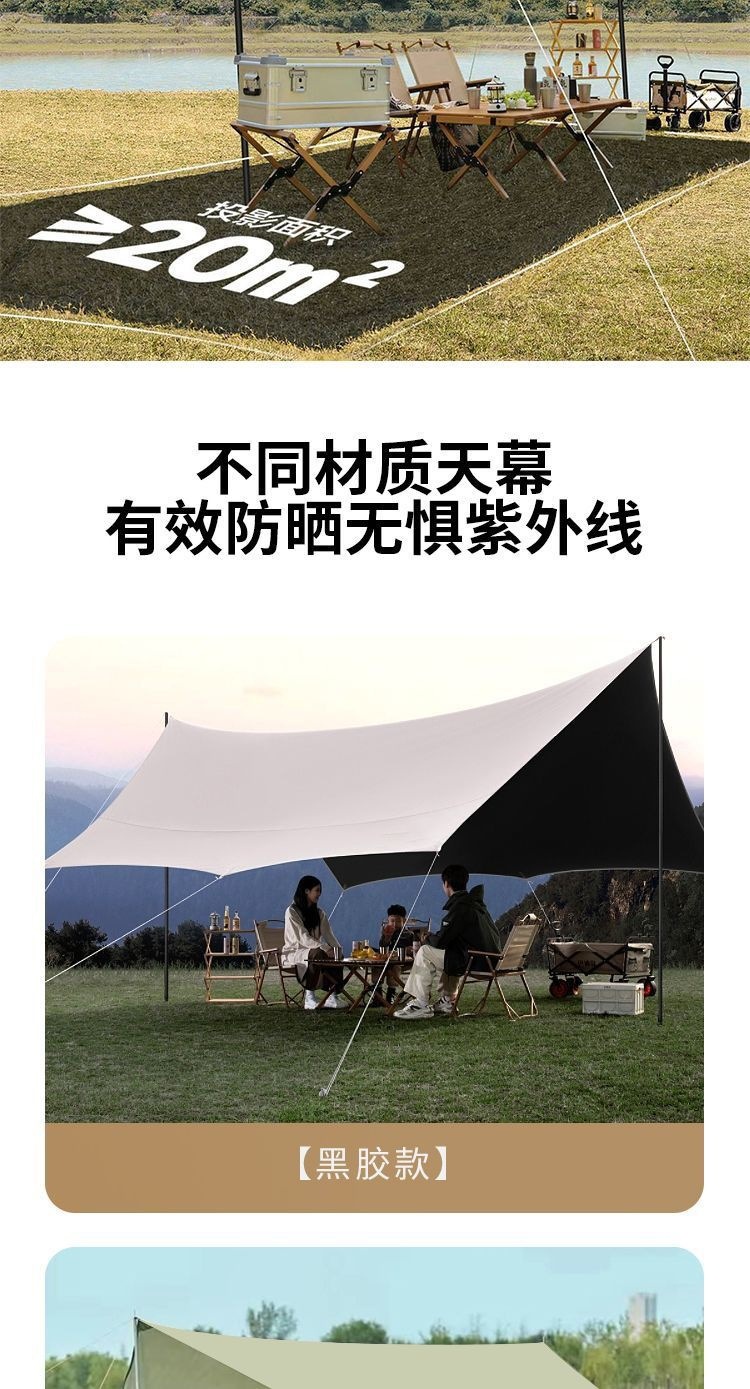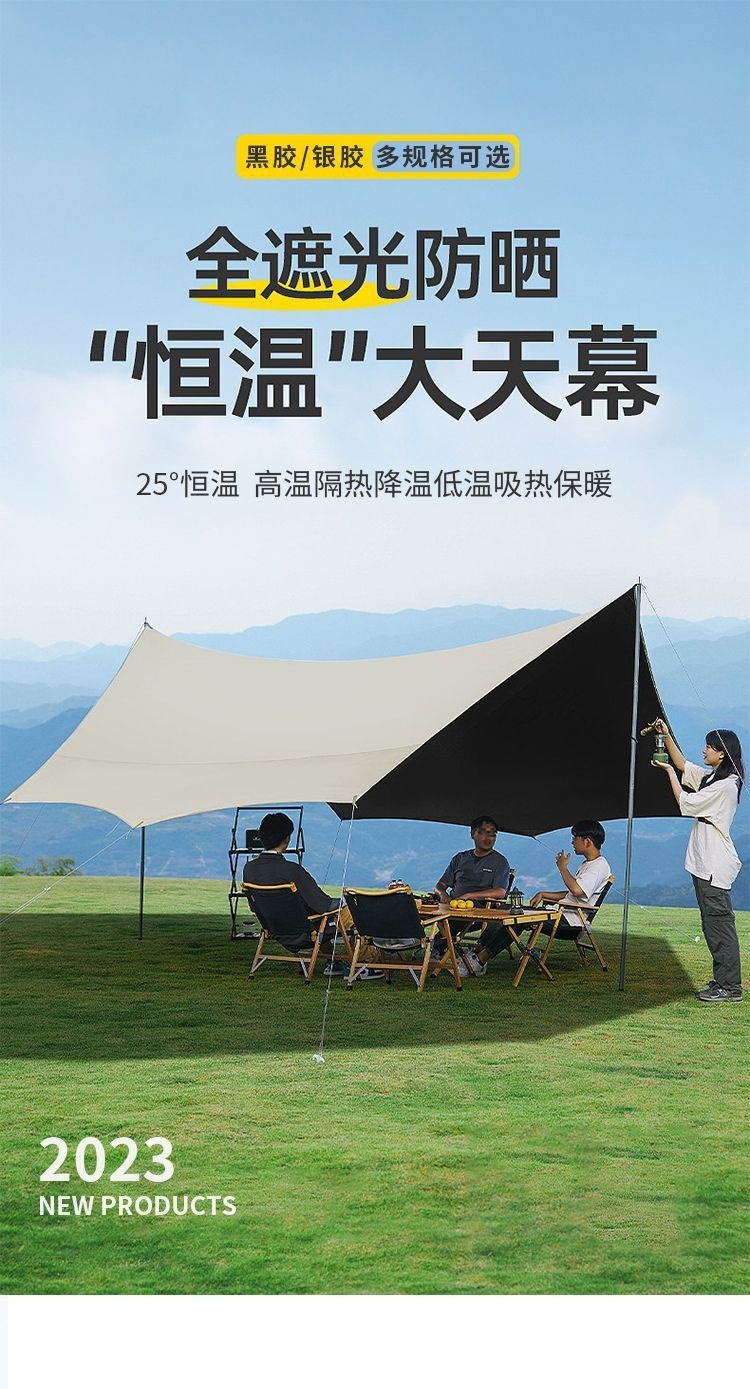 Outdoor Camping Camping Portable Thickened Black Rubber Butterfly Canopy Sunscreen Rainproof Awning Coated with Silver Hexagon