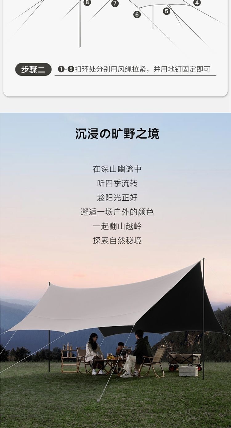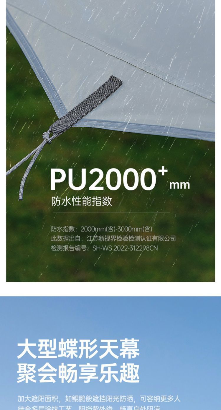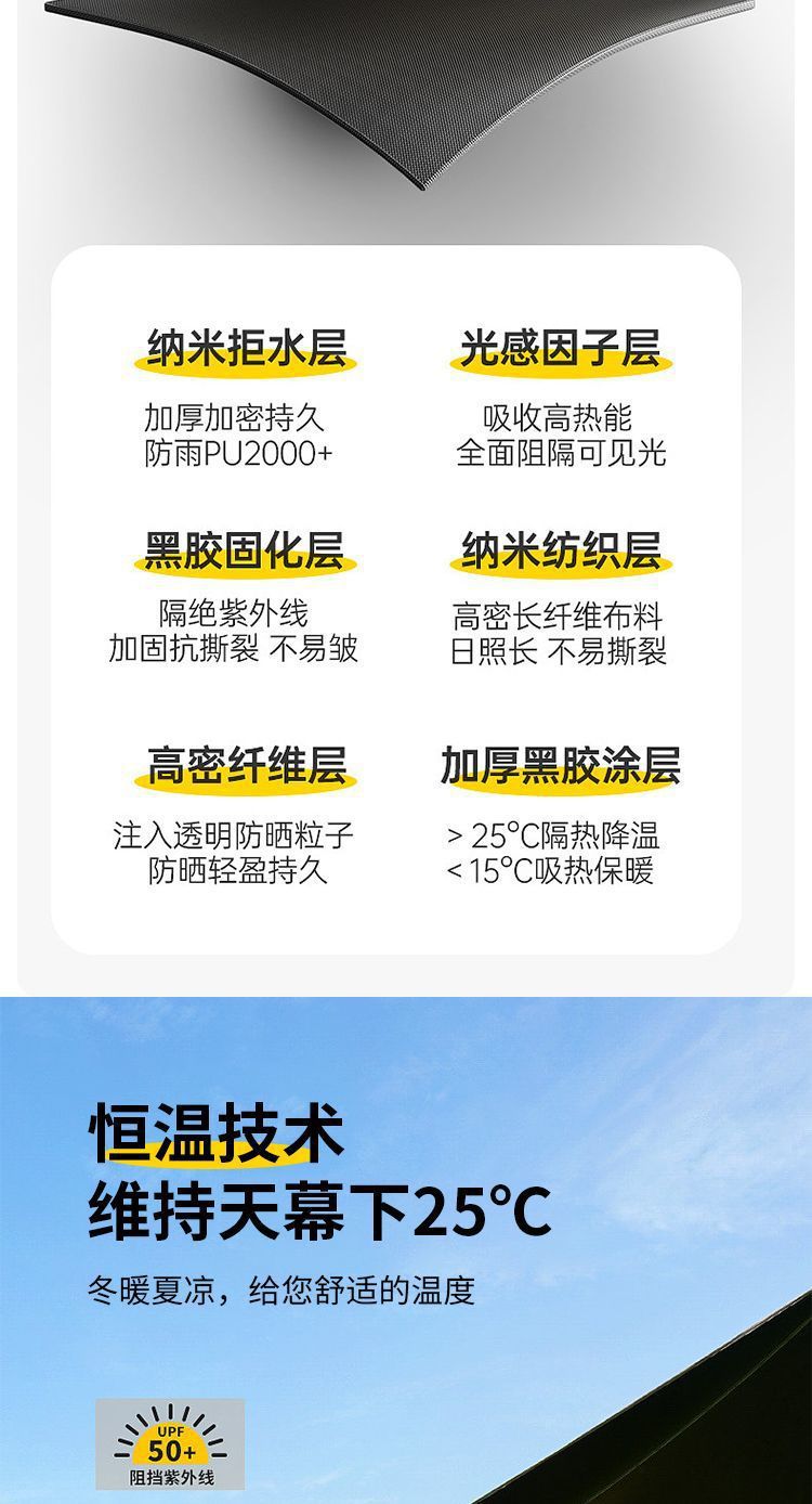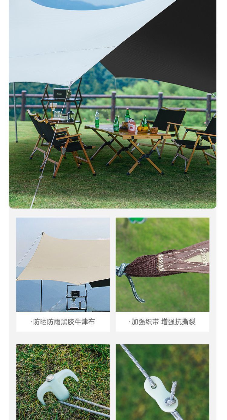 Outdoor Camping Camping Portable Thickened Black Rubber Butterfly Canopy Sunscreen Rainproof Awning Coated with Silver Hexagon