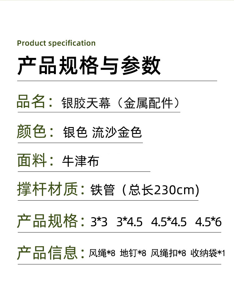 Outdoor Camping Canopy Silver coated Sunshade Canopy Oxford Cloth Waterproof Sunscreen Portable Tent Picnic Barbecue Canopy