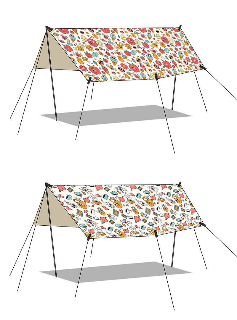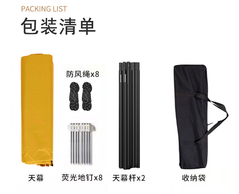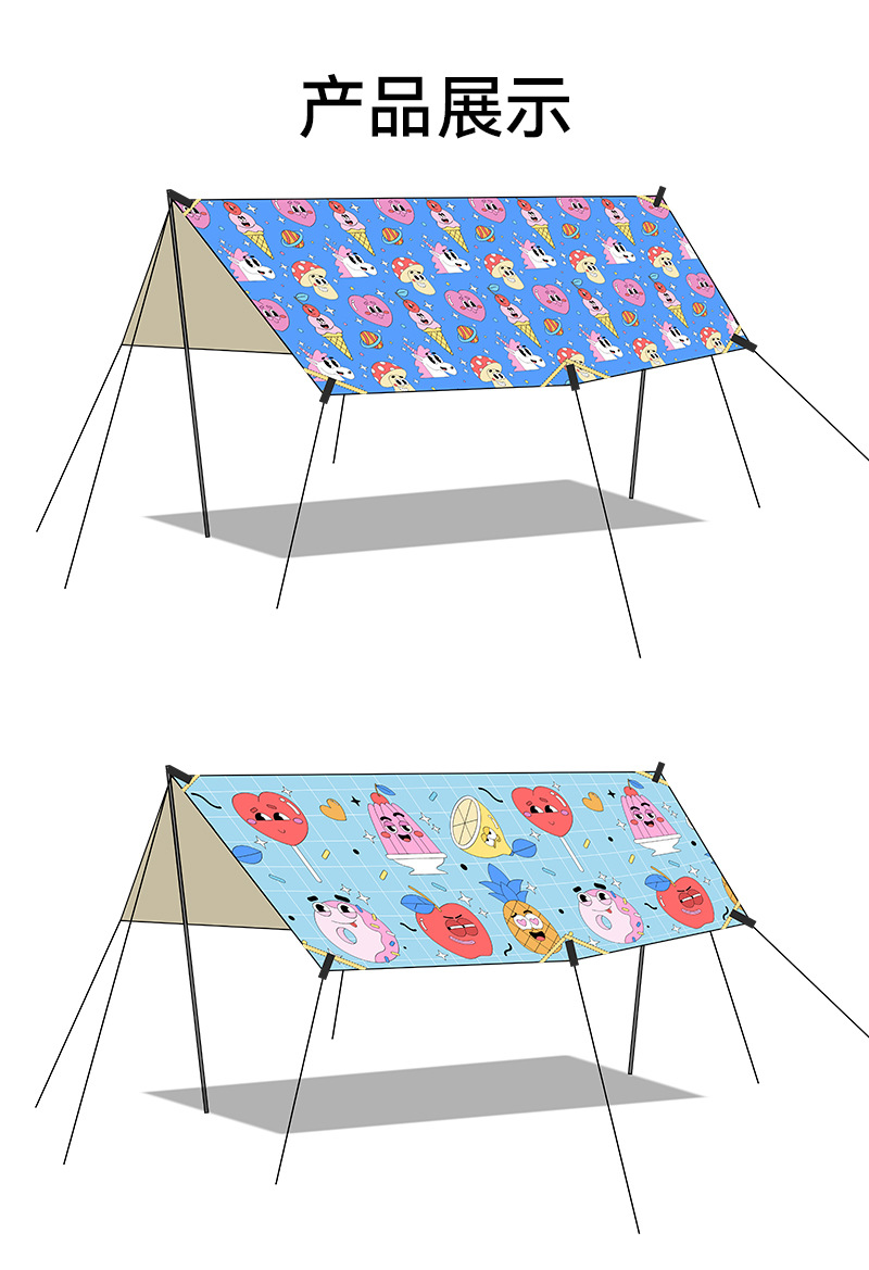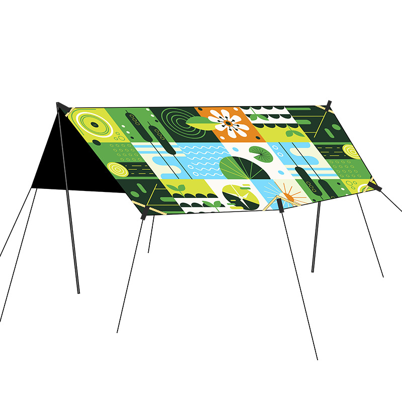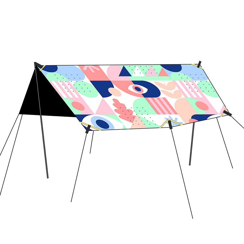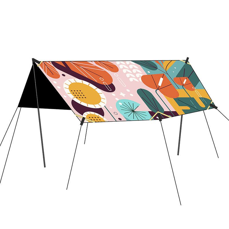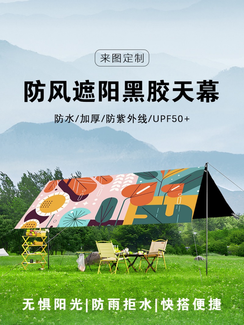 Outdoor camping equipment black rubber sunscreen windproof awning camping rainproof cloth picnic sunscreen printing logo
